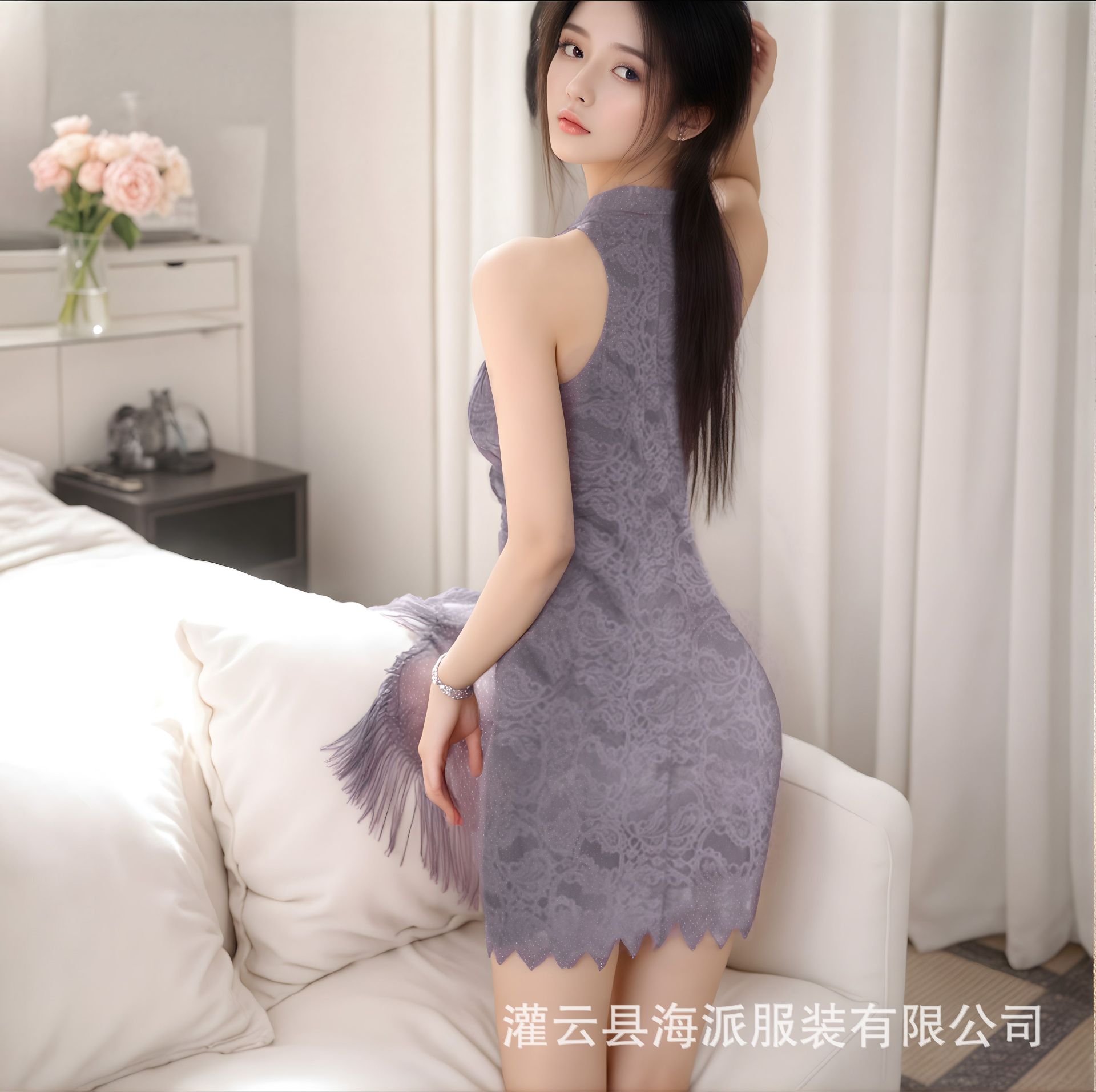 Костюм для женщин, шаль-кардиган для горячих девушек, кружевное платье с вырезом на шее, комплект из двух предметов