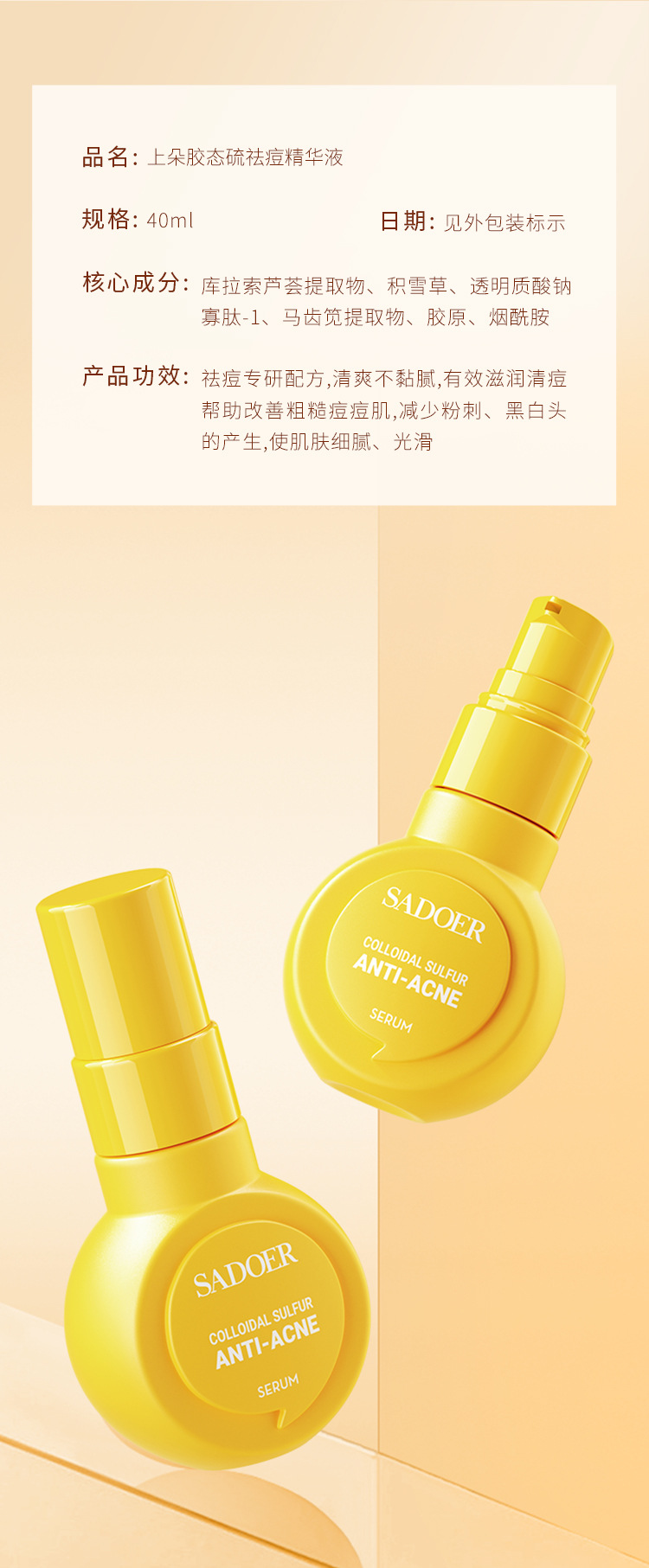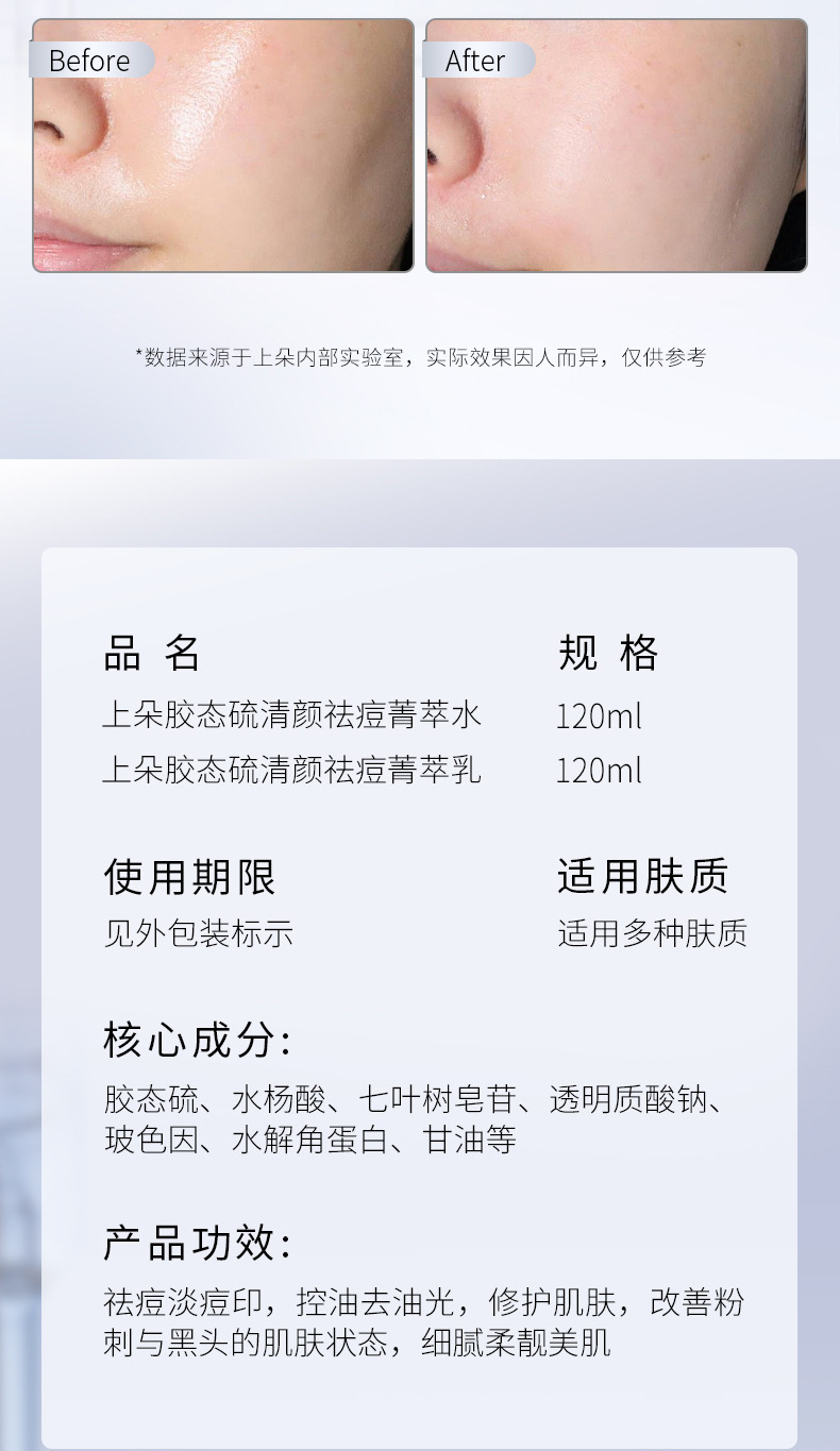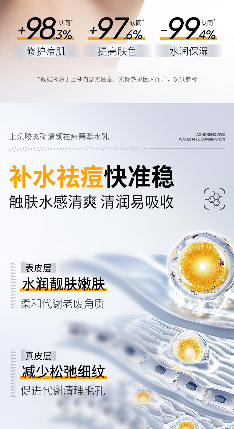 Очищающая и очищающая эссенция-эмульсия с коллоидной серой Shangduo, освежающая и увлажняющая, для сияющей и увлажненной кожи, оптом.
