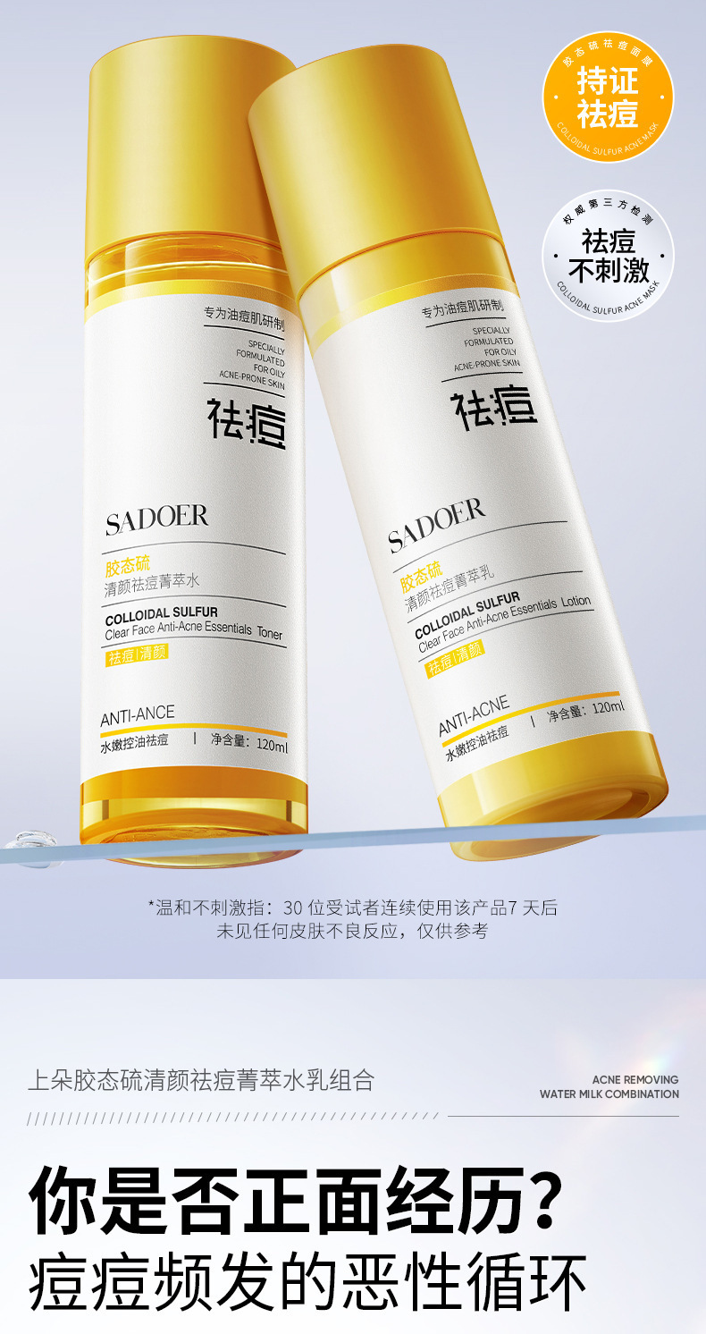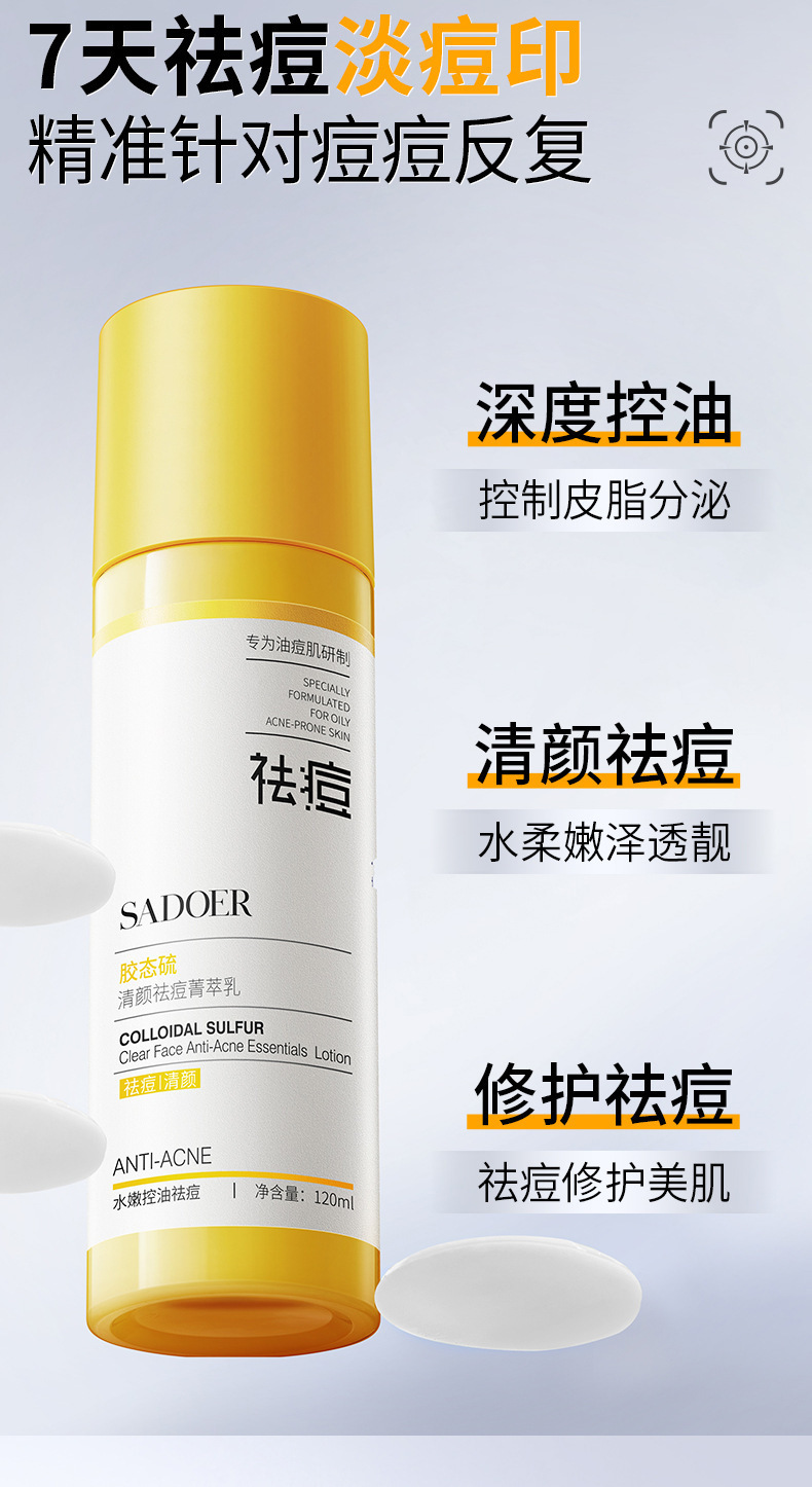Вода-эссенция против прыщей 120 мл; Эссенция против прыщей Молочко 120мл; Маска-эссенция Shangduo Colloidal Sulfur Clearing Face против прыщей (в упаковке) 25 г x 5 шт. (2)