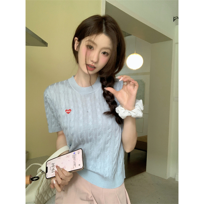 Летний новый вязаный топ для кормления с французской вышивкой, утягивающий топ для кормления с короткими рукавами, нежный стильный топ для кормления