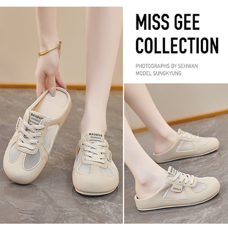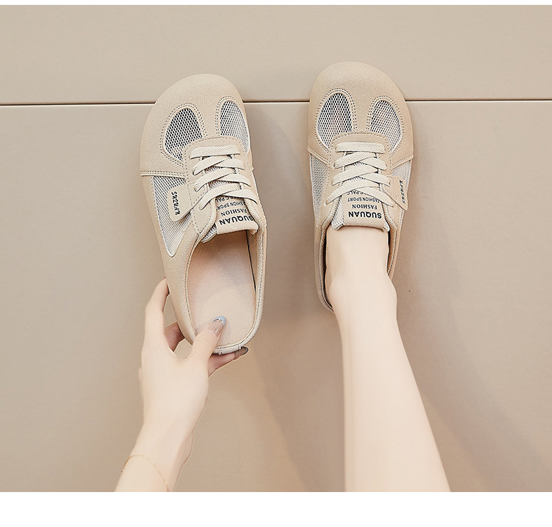 2025 новые летние женские туфли из сетчатого дышащего материала, удобные слипоны с открытым носком, простые и универсальные повседневные туфли
