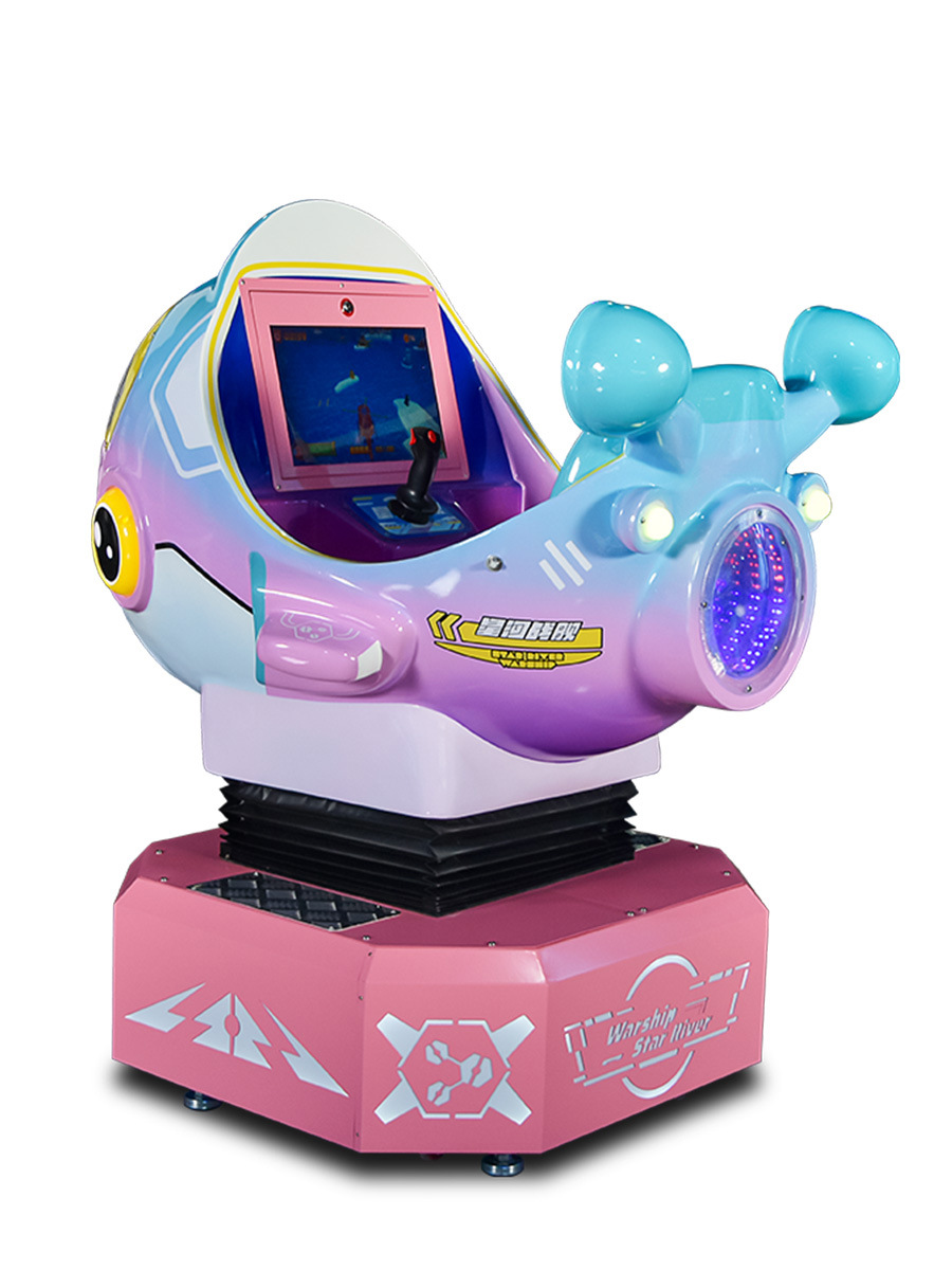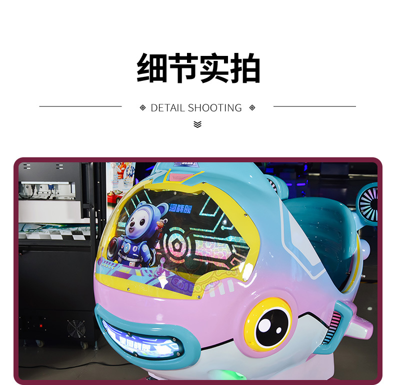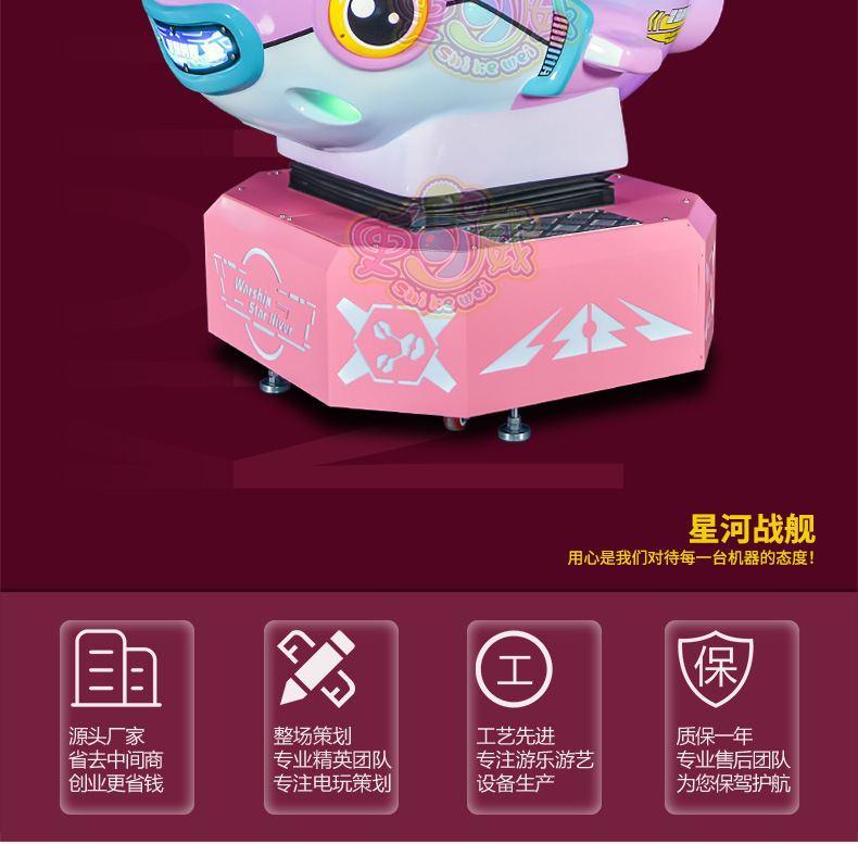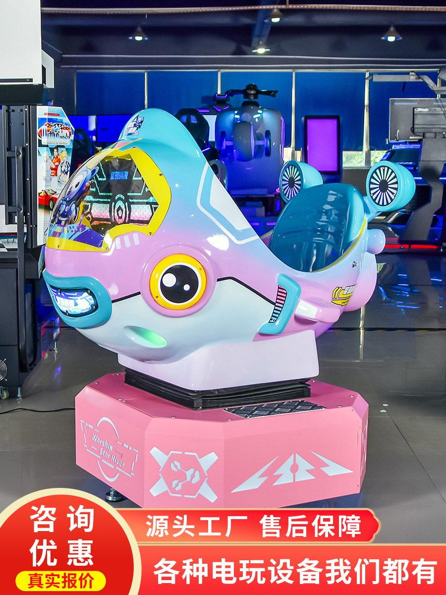 Новая вращающаяся детская монетная качалка Galaxy Battleship от Shikewei — интерактивное игровое оборудование, размещённое у входа в торговый центр.