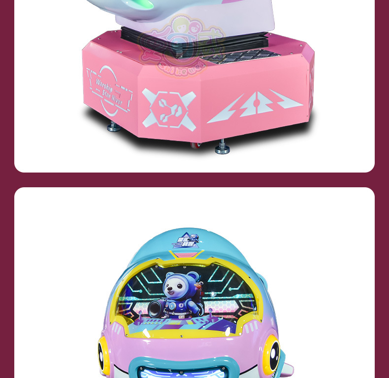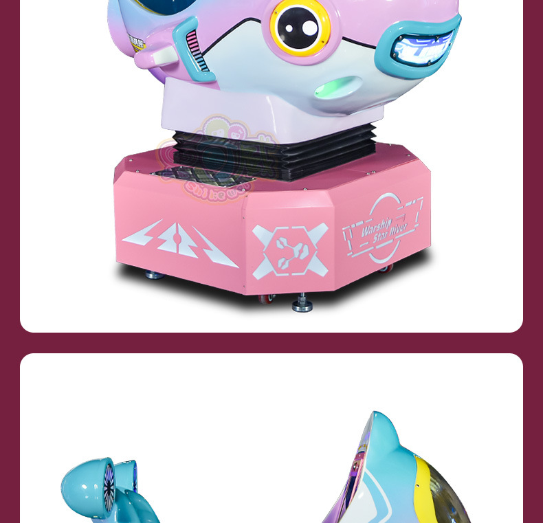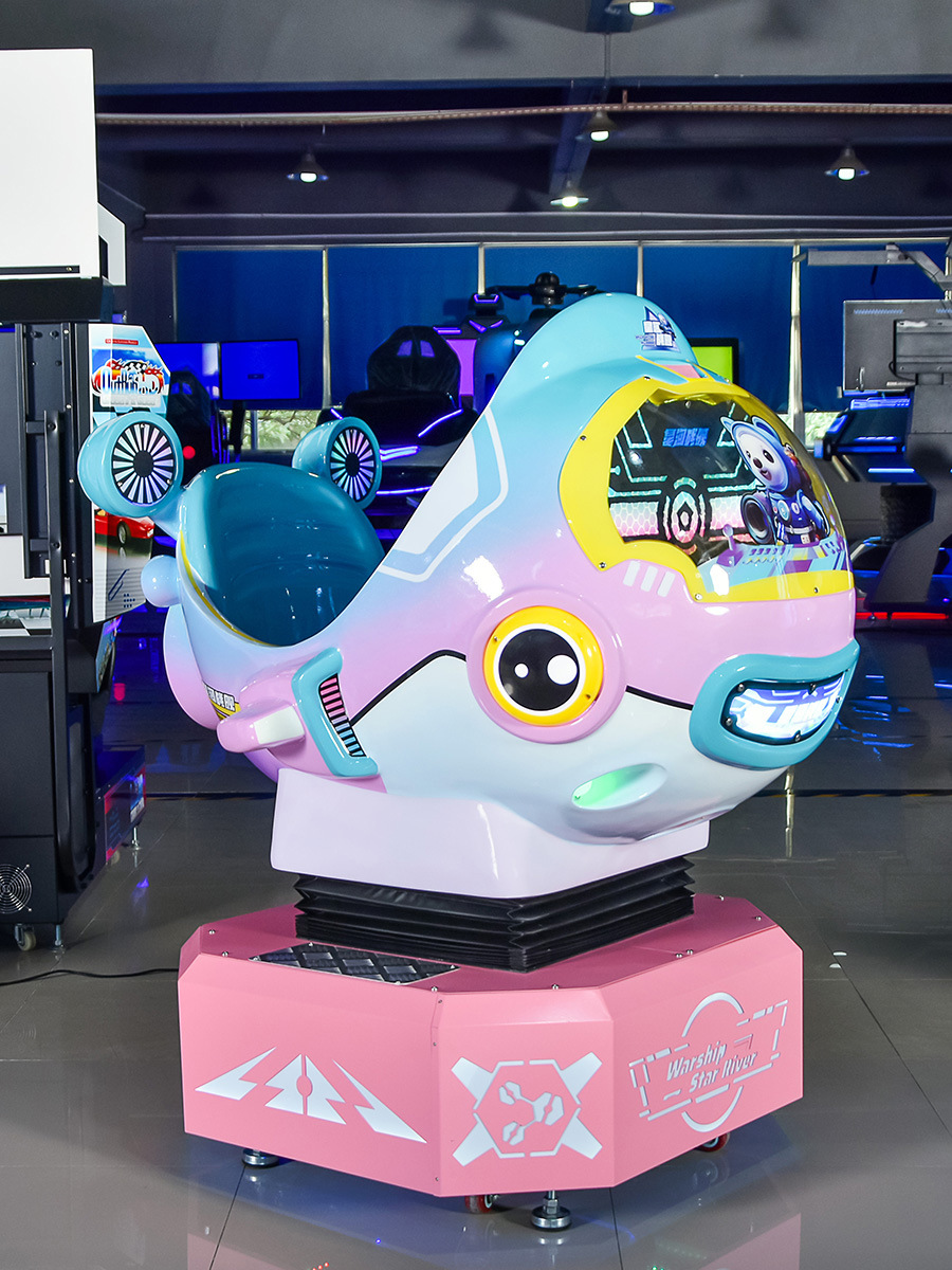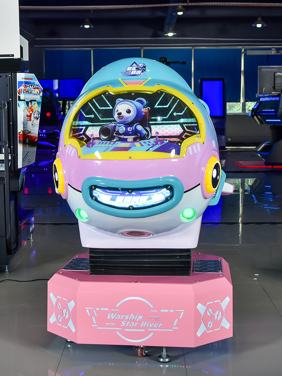 Новая вращающаяся детская монетная качалка Galaxy Battleship от Shikewei — интерактивное игровое оборудование, размещённое у входа в торговый центр.