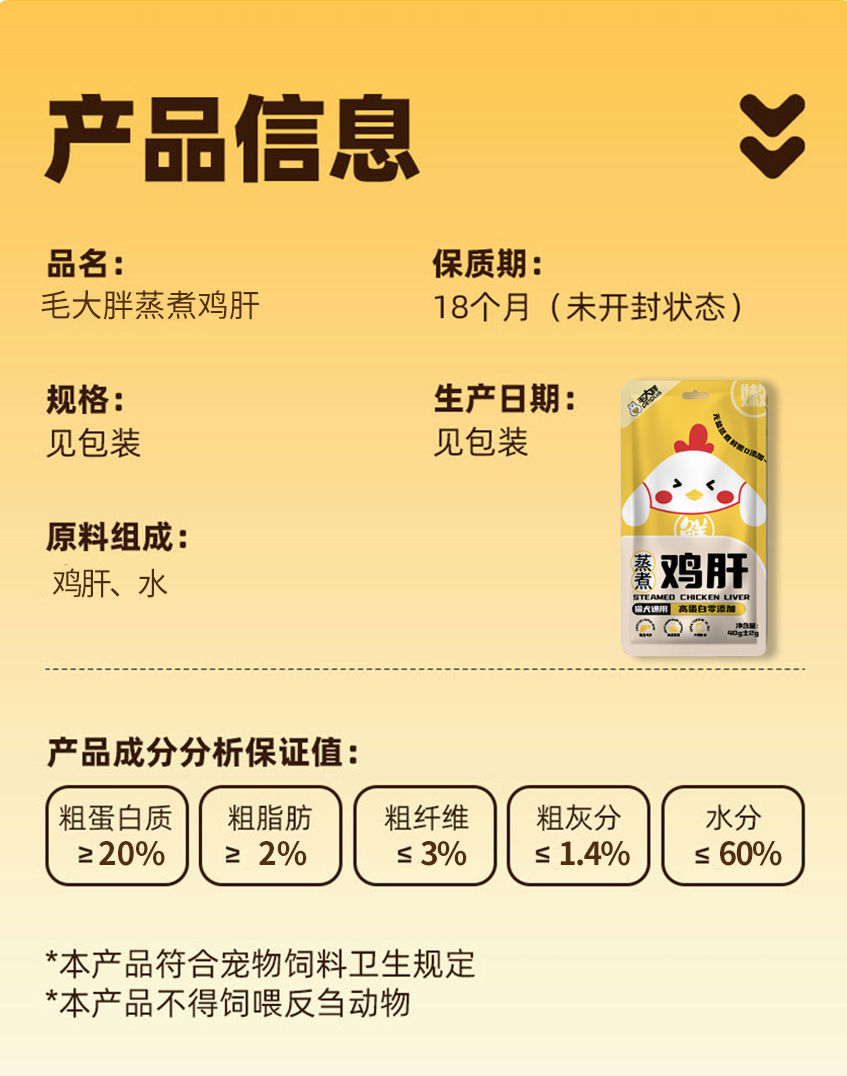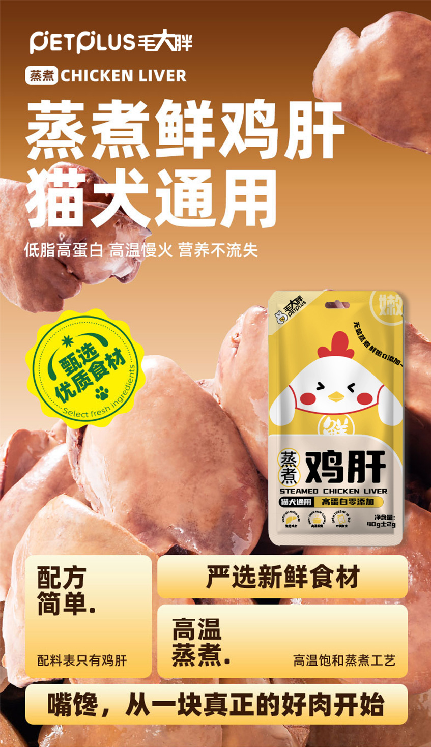 Mao Da Pang: Куриная печень на пару и отварная куриная печень для домашних животных, готовая к употреблению, полезная, питательная, увлажняющая смесь кормов для кошек и собак, 40 г
