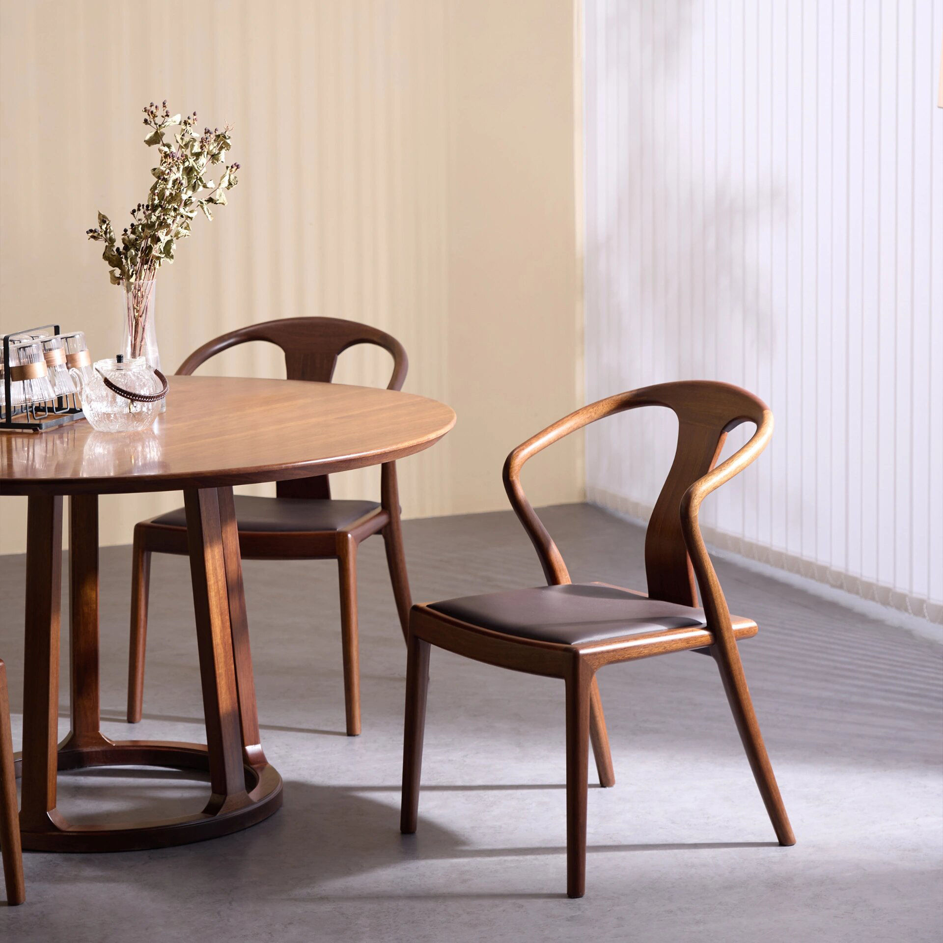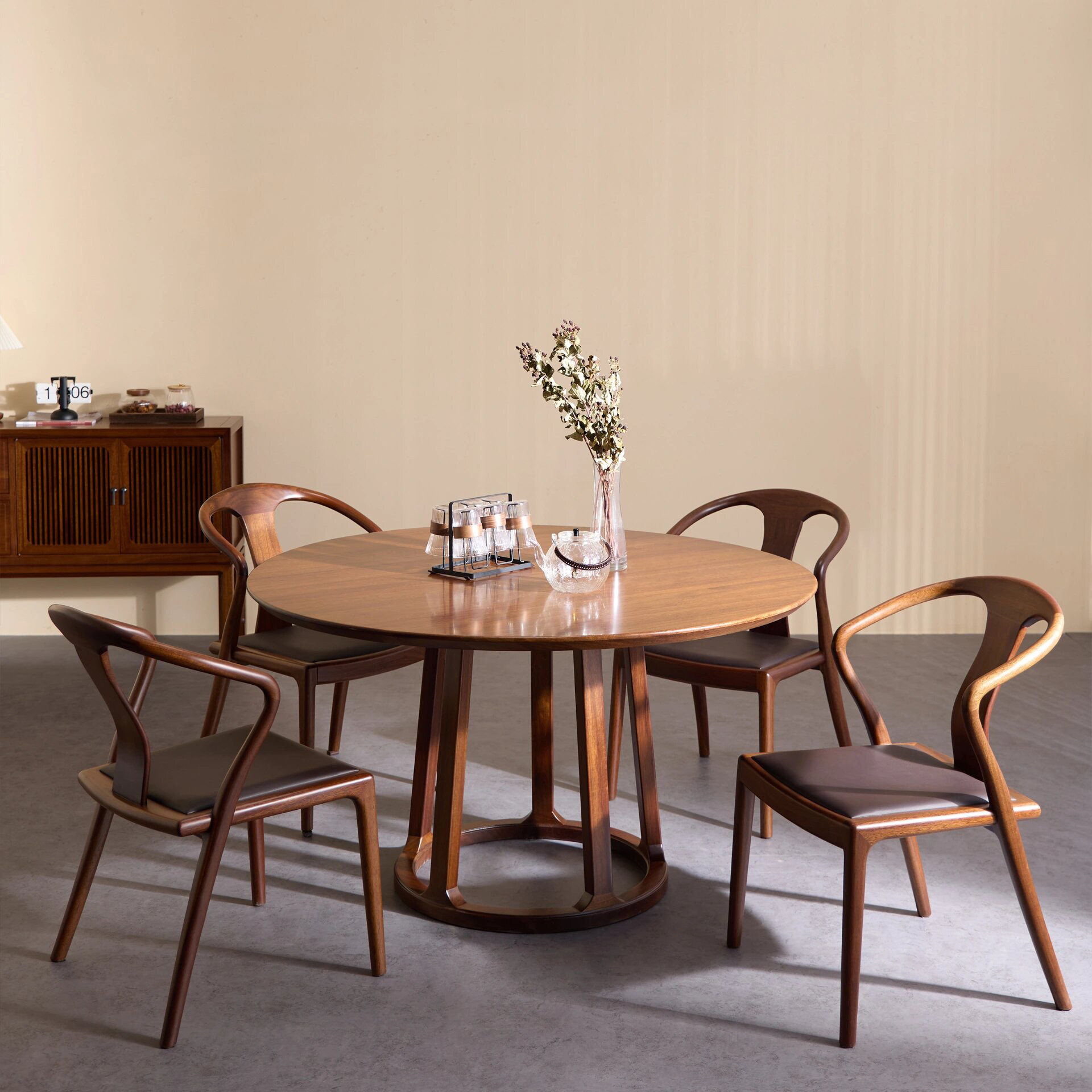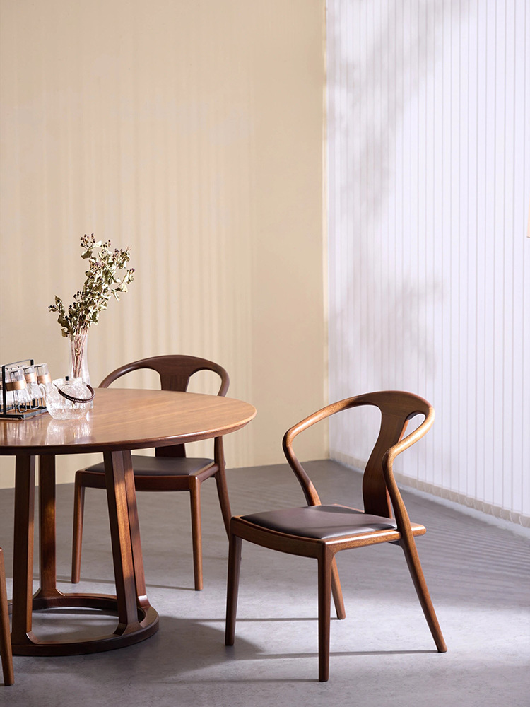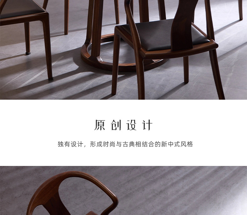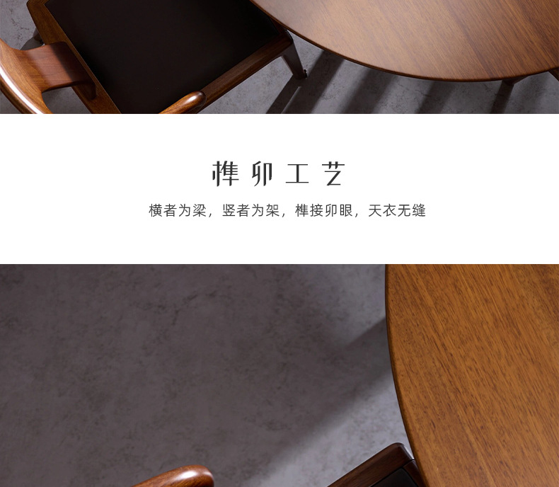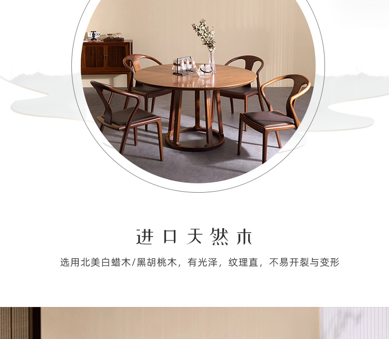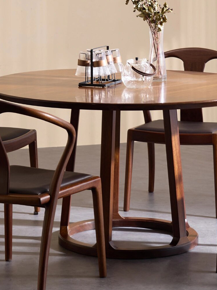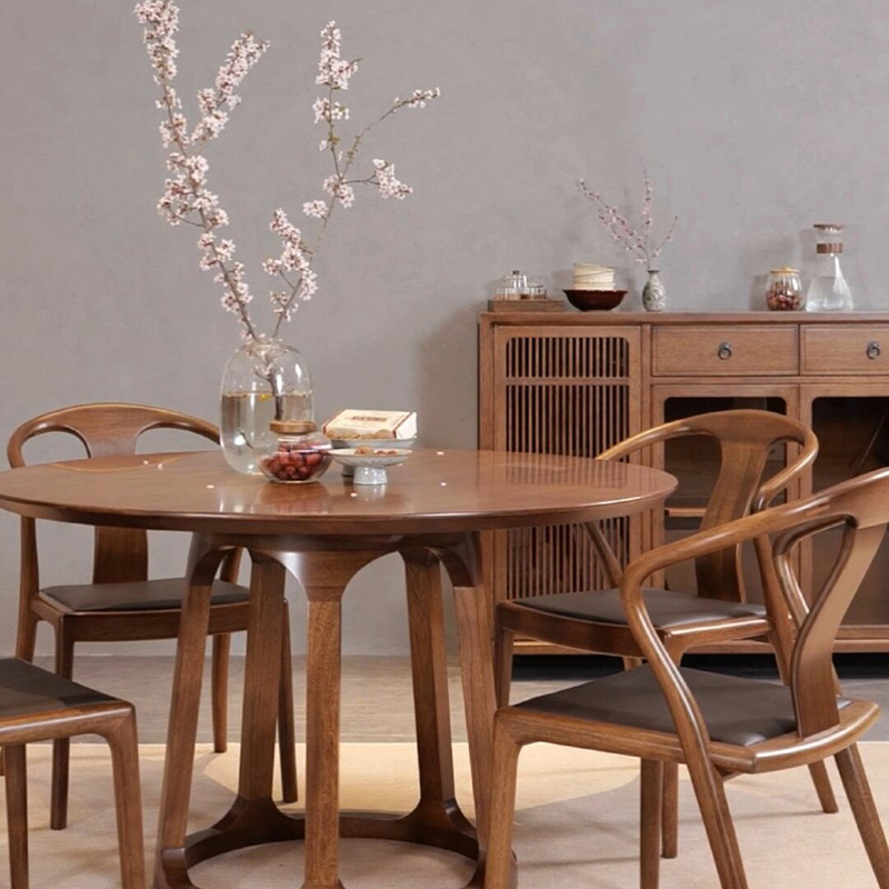Suo Mao Новый китайский стиль, круглый обеденный стол и набор стульев из цельного дерева для домашнего использования, обеденный стол из черного ореха для небольших помещений, простой круглый обеденный стол.
