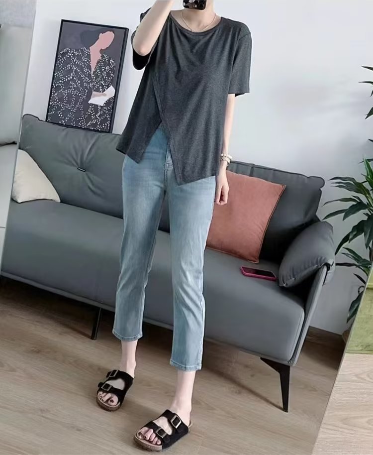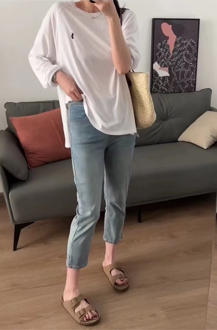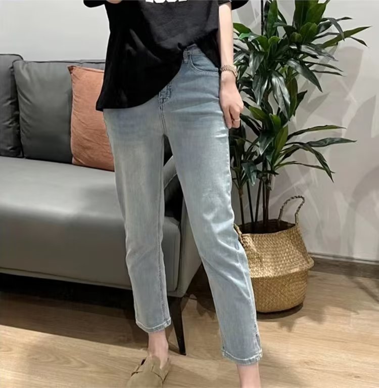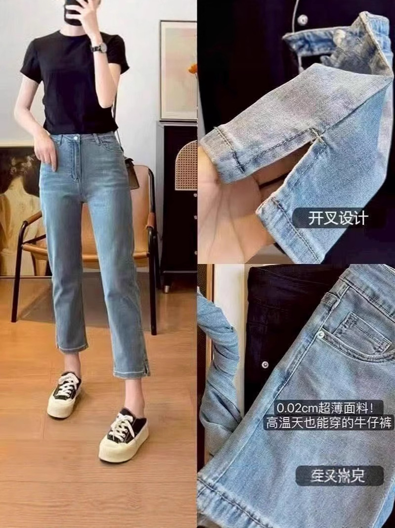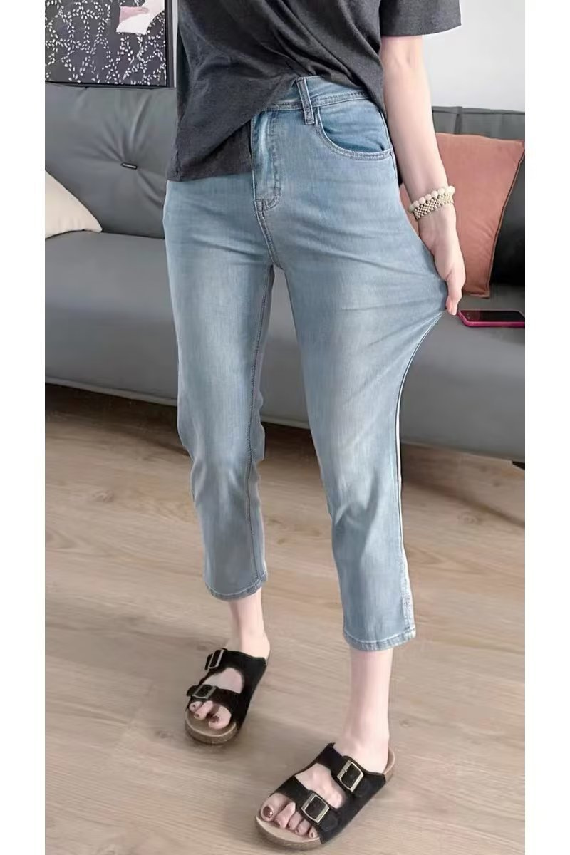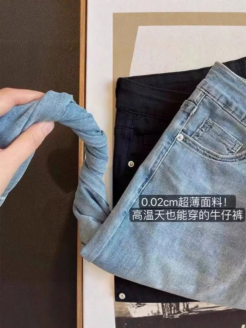 Женские эластичные джинсы из ледяного шелка, укороченные летние брюки больших размеров, укороченные утягивающие брюки с высокой талией для миниатюрных фигур грушевидной формы.