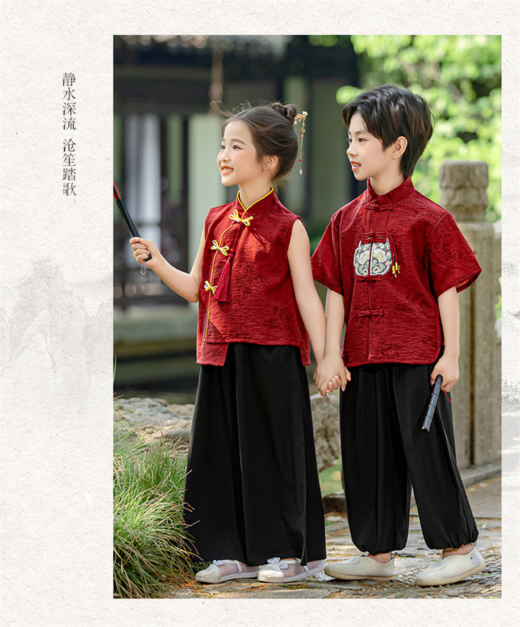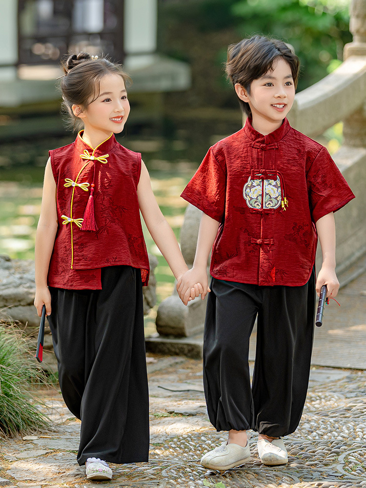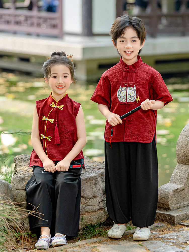 Новые детские костюмы в китайском стиле для мальчиков династии Хань, летняя тонкая одежда для выступлений в детском саду для девочек династии Хань