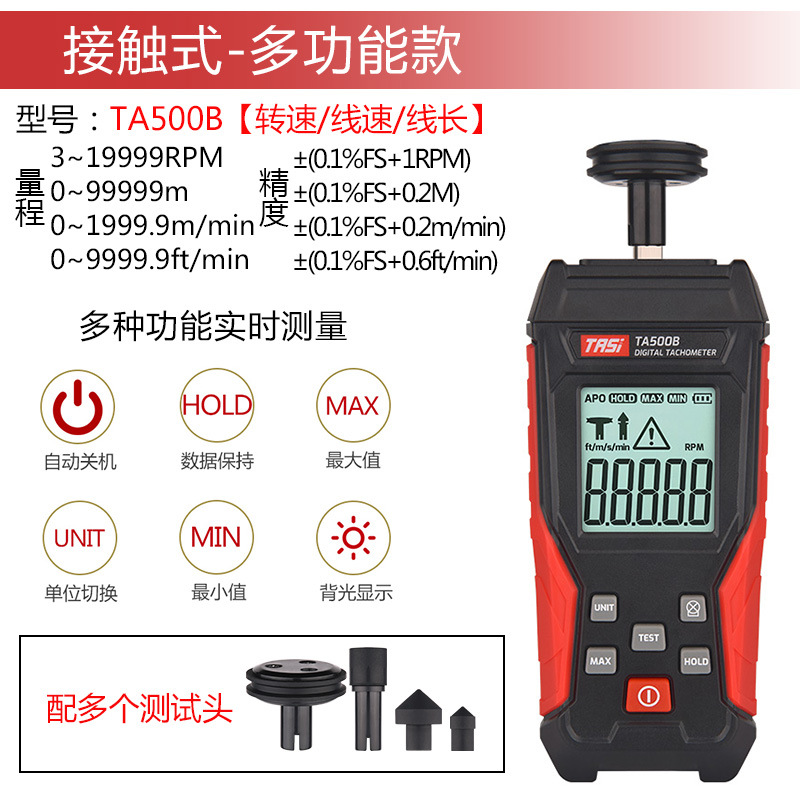 Цифровой контактный тахометр TASI TA500B с дисплеем, измеритель скорости, измеритель линейной скорости