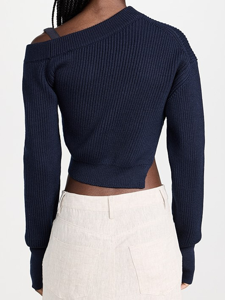 Уличная мода, пуловер с асимметричным регулируемым воротником, женский трикотаж, обработка и индивидуальный пошив трикотажа Dalang, см. рисунок, создание узора