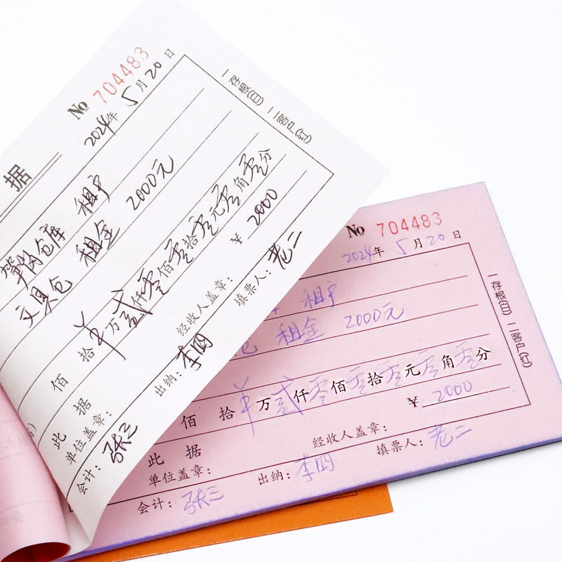 Двухкомпонентная, трехкомпонентная, многоколонная самокопирующаяся кассовая книга для финансовых документов.