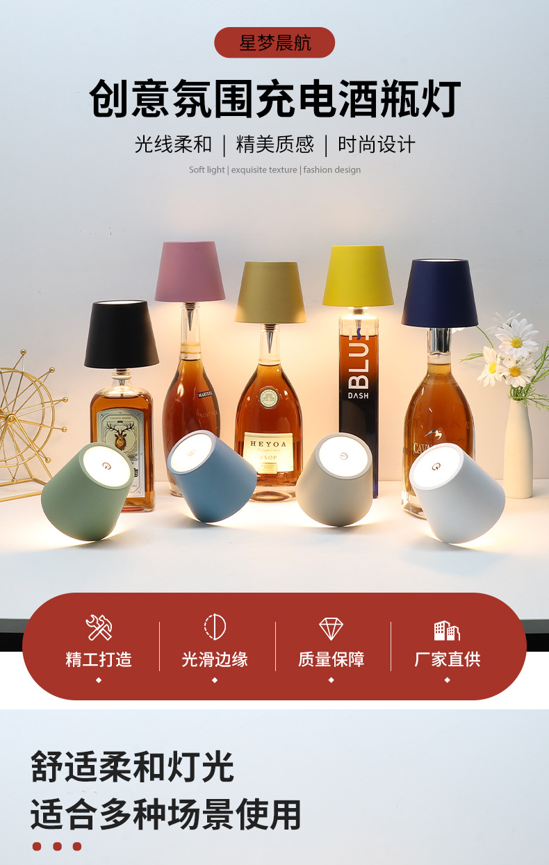 Лампа для зарядки бутылки вина, украшение, светодиодный ночник, атмосфера для спальни, барная настольная лампа, зарядка через USB, прикроватная лампа, настольная лампа
