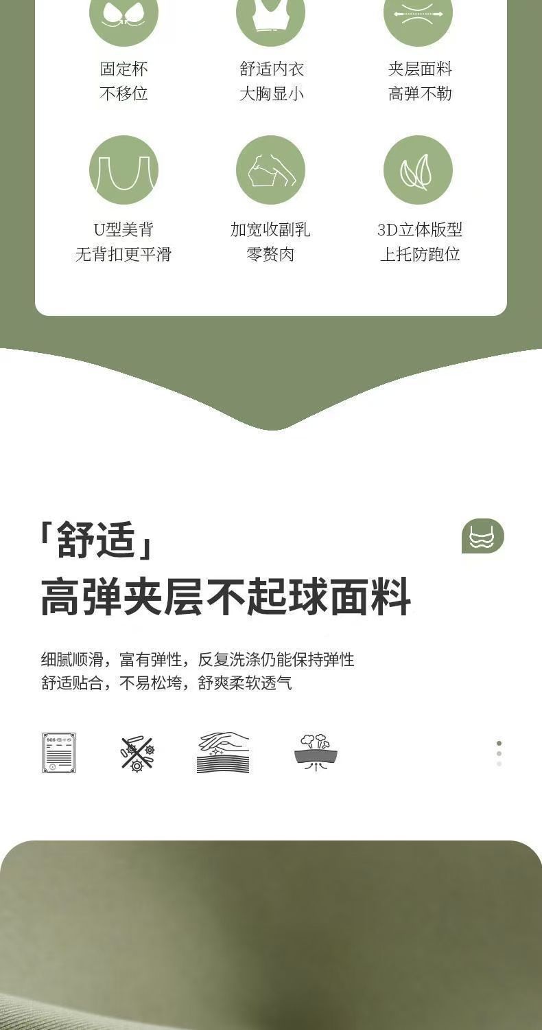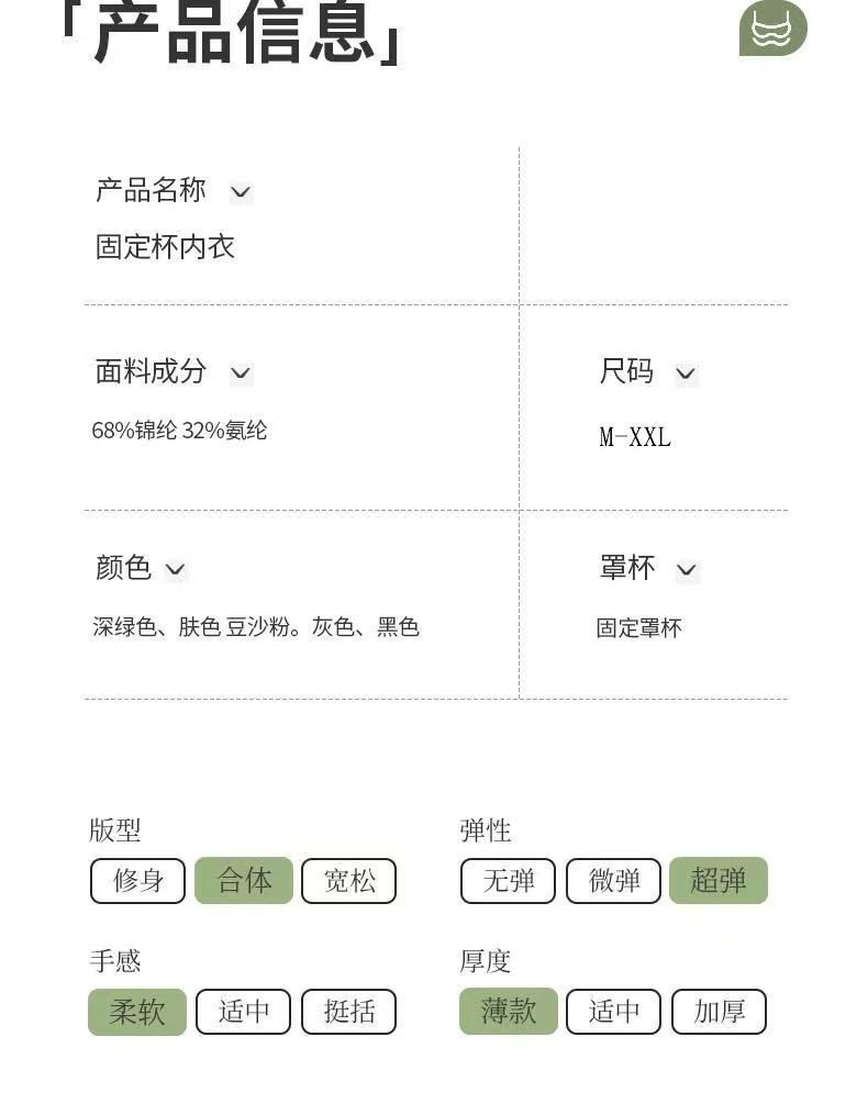 собрать; Бесследный; дышащий; подталкивать вверх; Красивая спина; Впитывать пот; Антиэкспозиция; удобный; Большая спина; Боковой сбор; Закройте вторичные груди