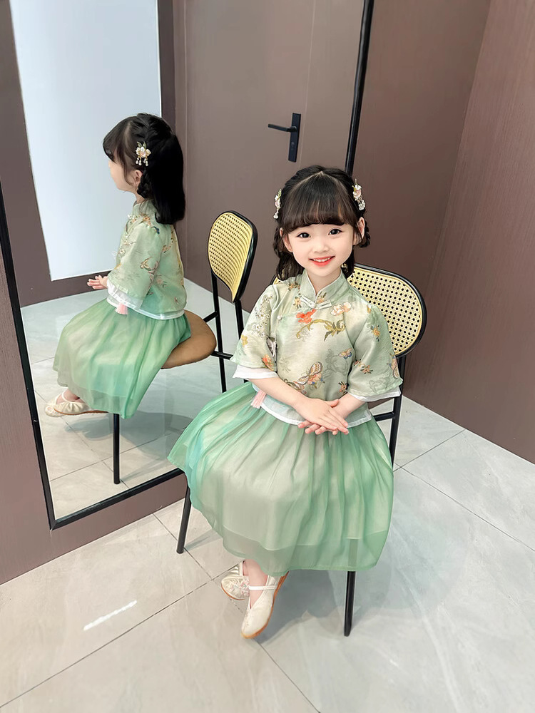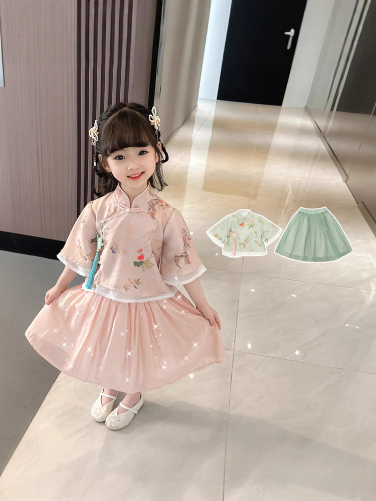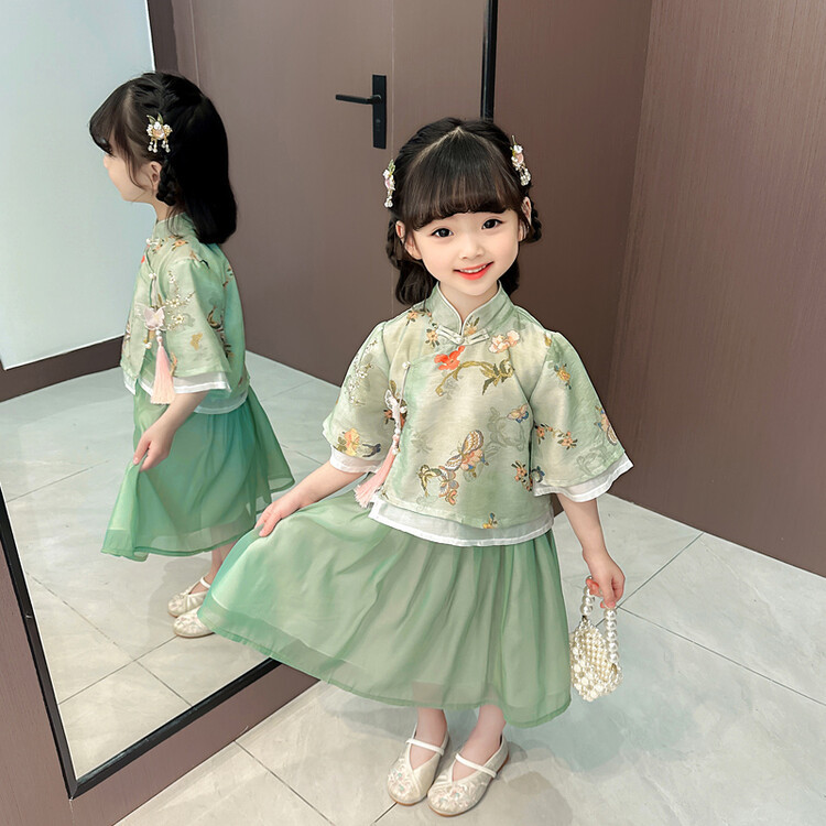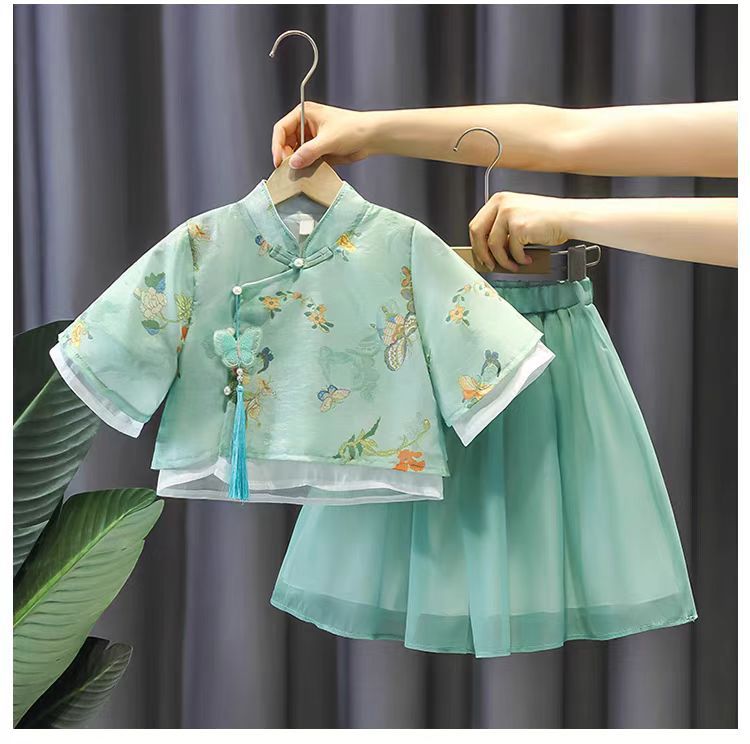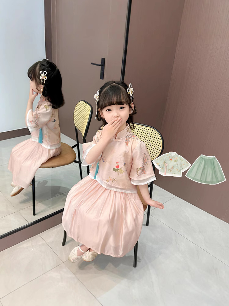 Костюм Ханфу для девочек, новый летний костюм Тан, новый летний наряд в китайском стиле для детей, китайский стиль, супер фея в древнем стиле Ханфу.