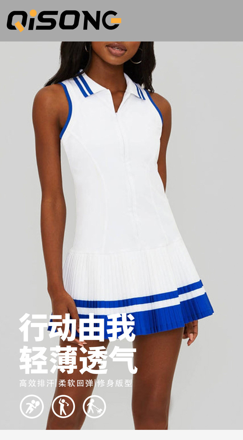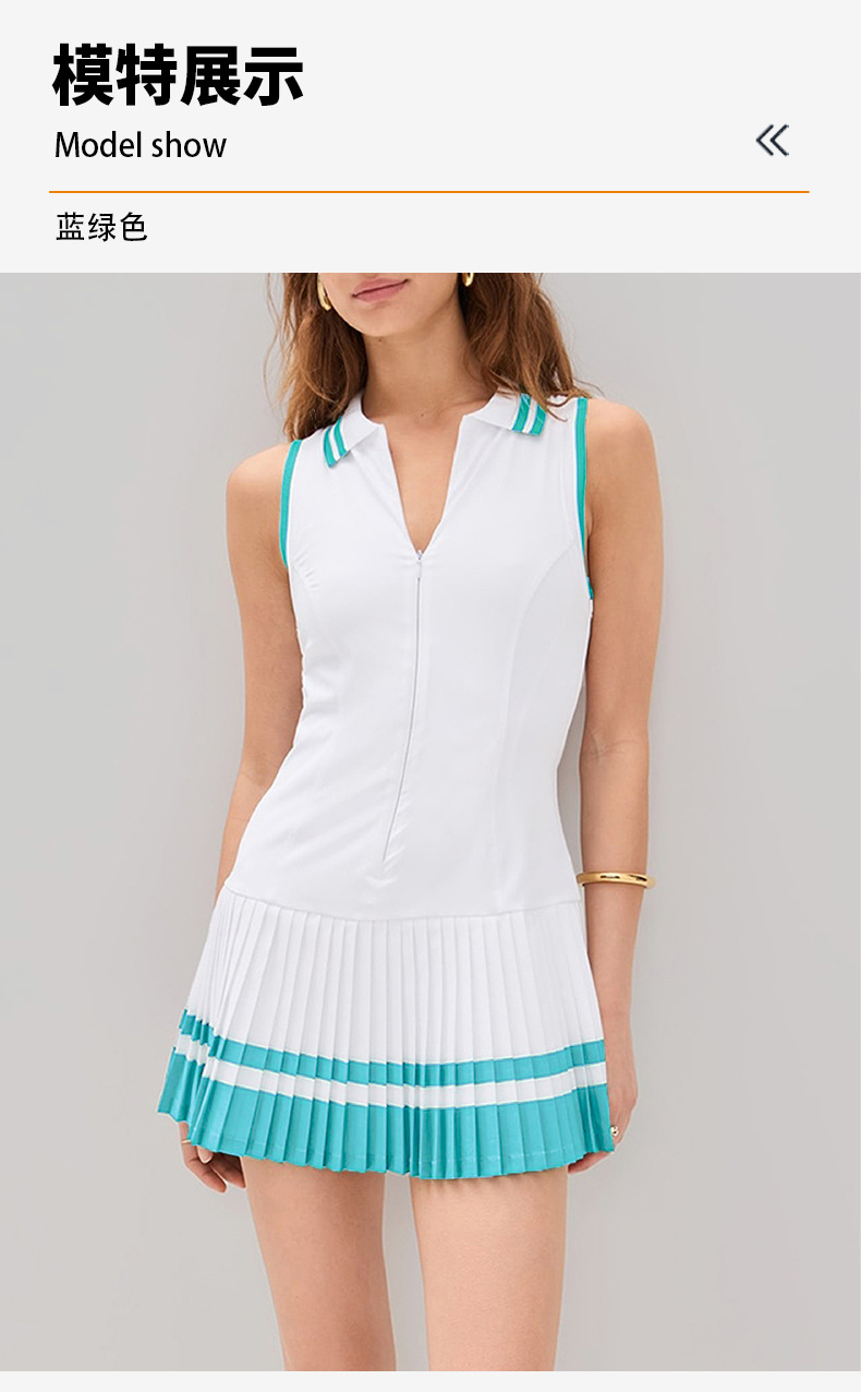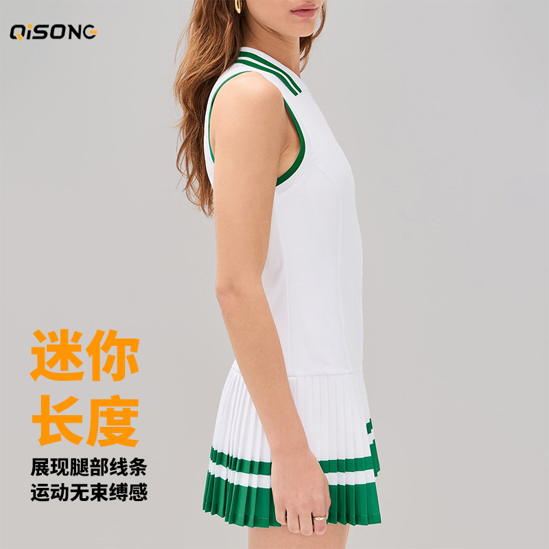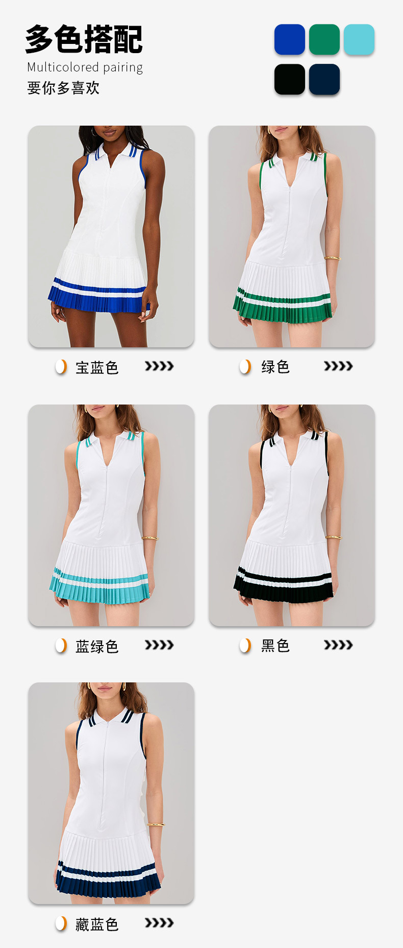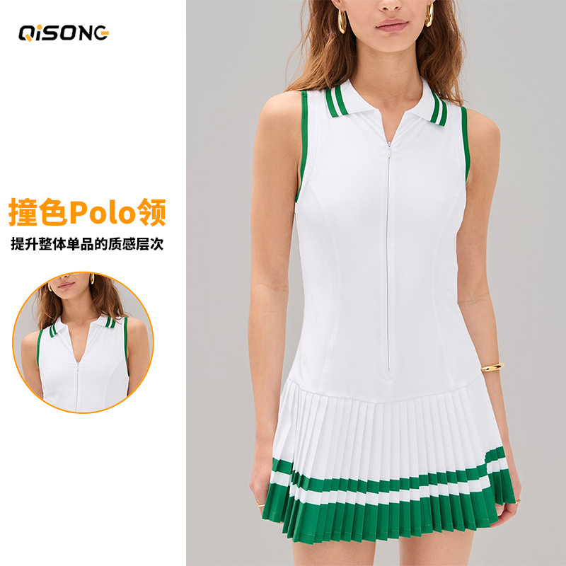Трансграничная молния без рукавов Polo-образный воротник юбка теннисный женский быстрый сухой дышащий цвет плиссированное повседневное платье для фитнеса