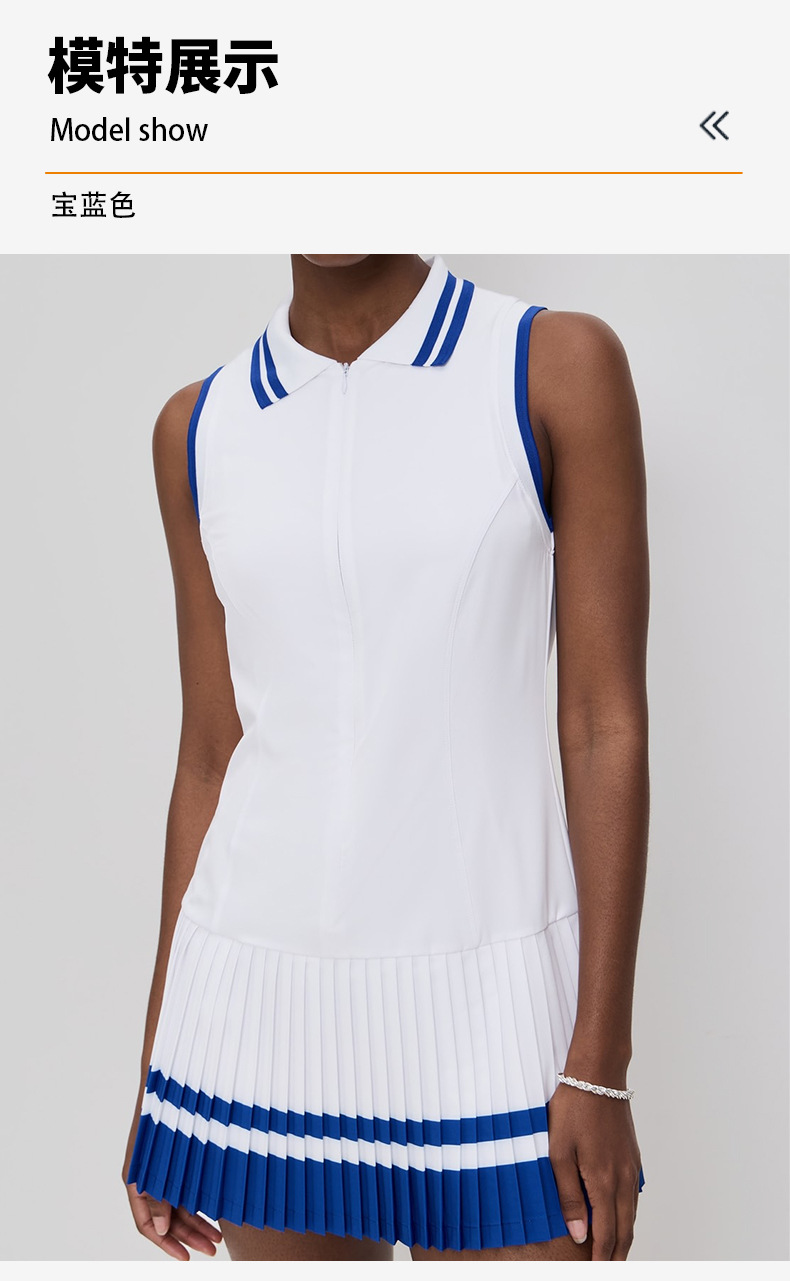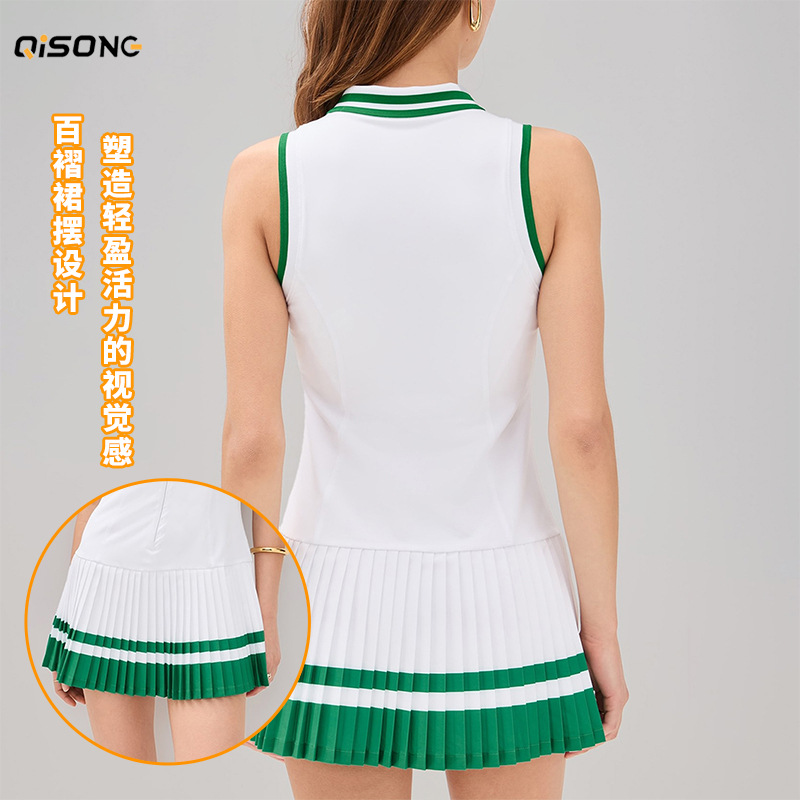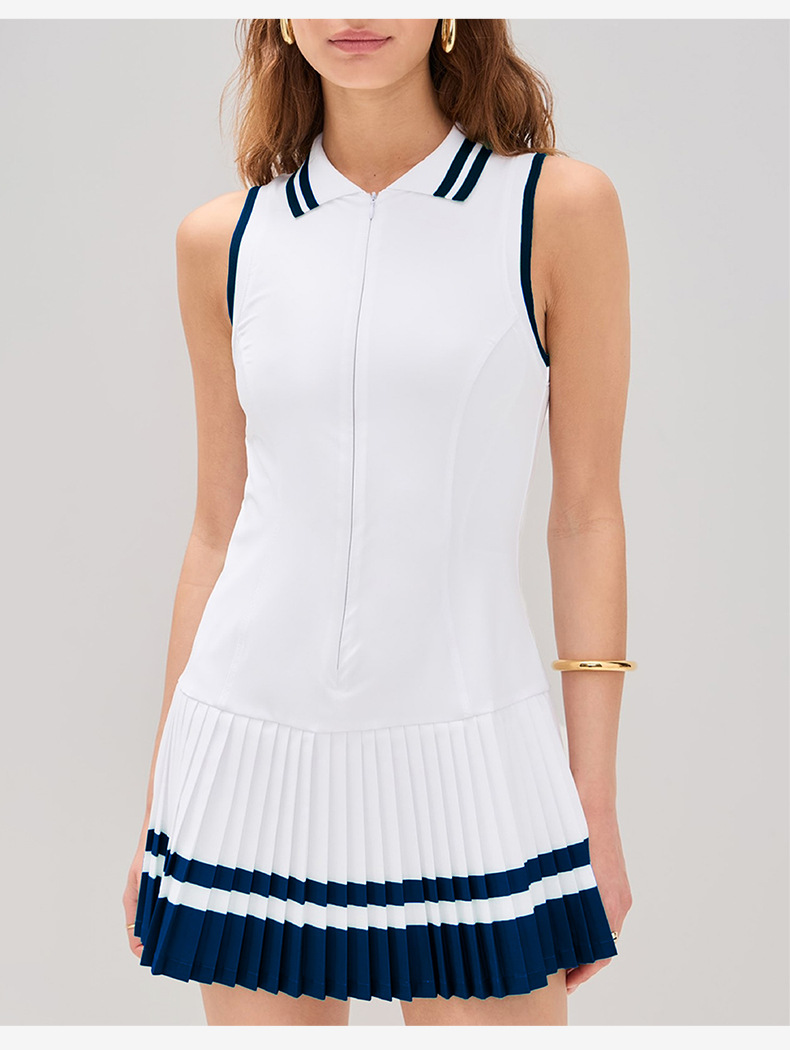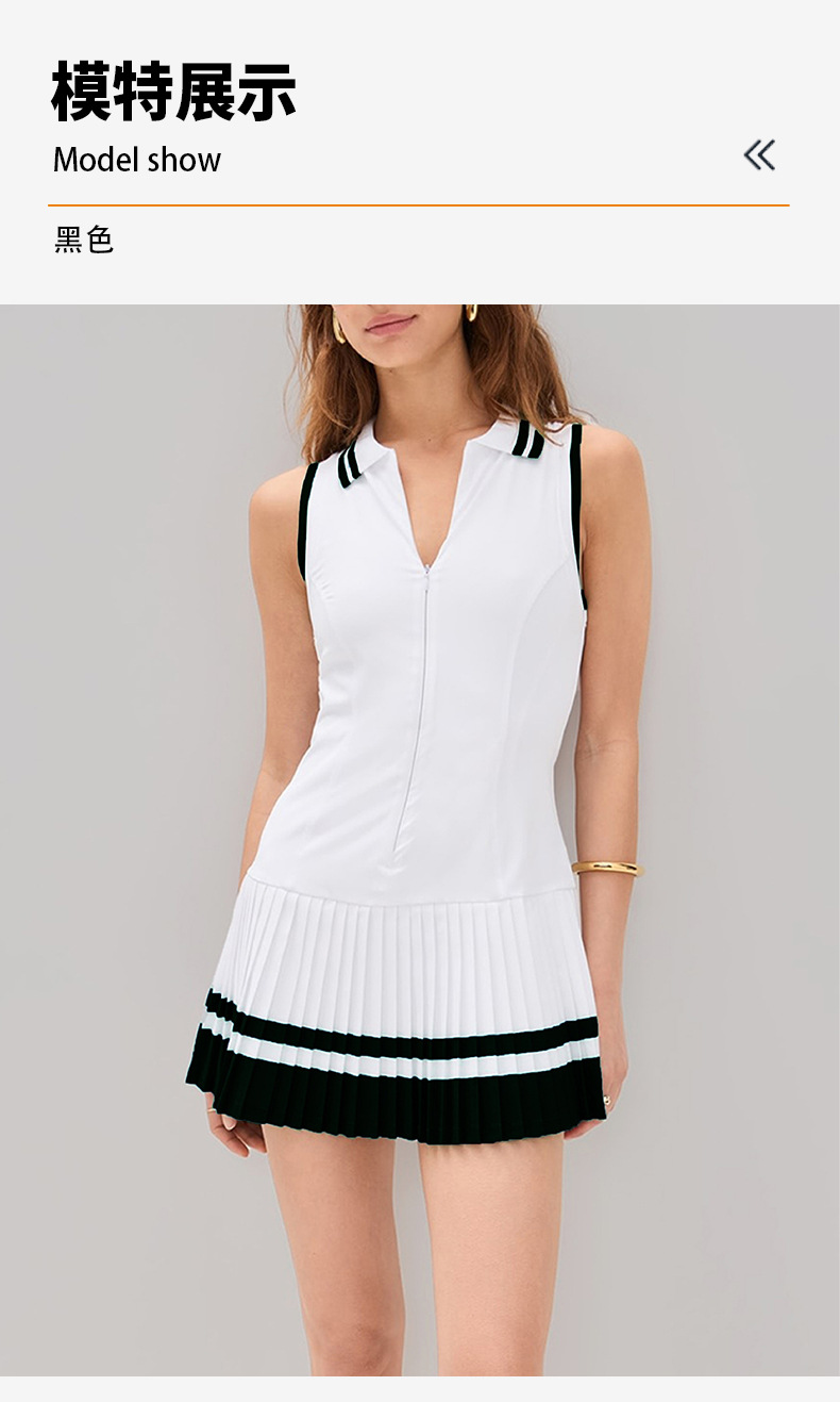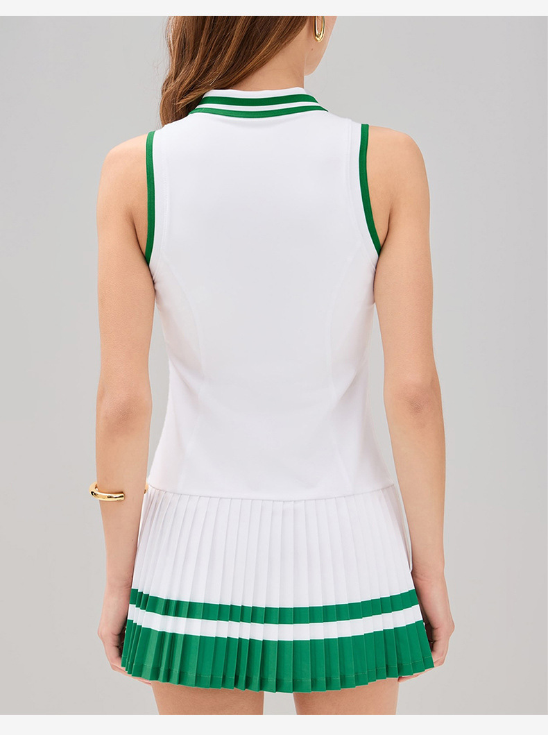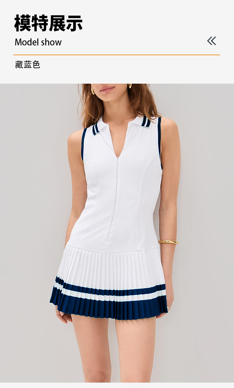 Трансграничная молния без рукавов Polo-образный воротник юбка теннисный женский быстрый сухой дышащий цвет плиссированное повседневное платье для фитнеса