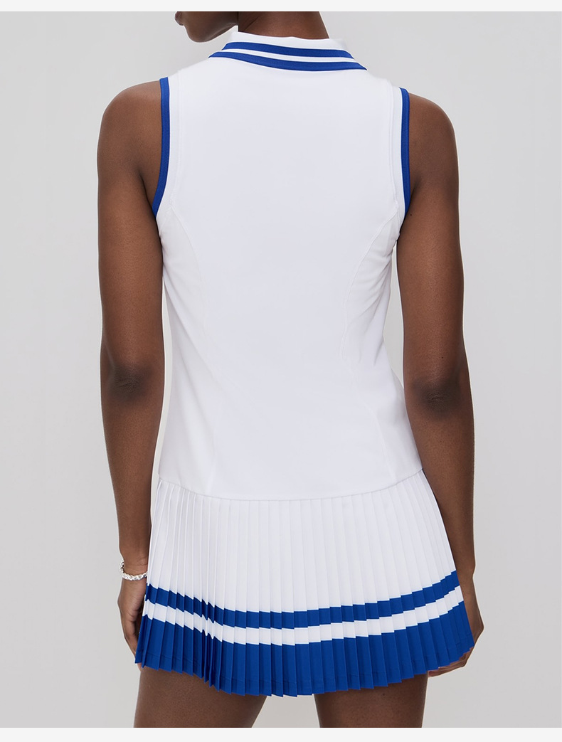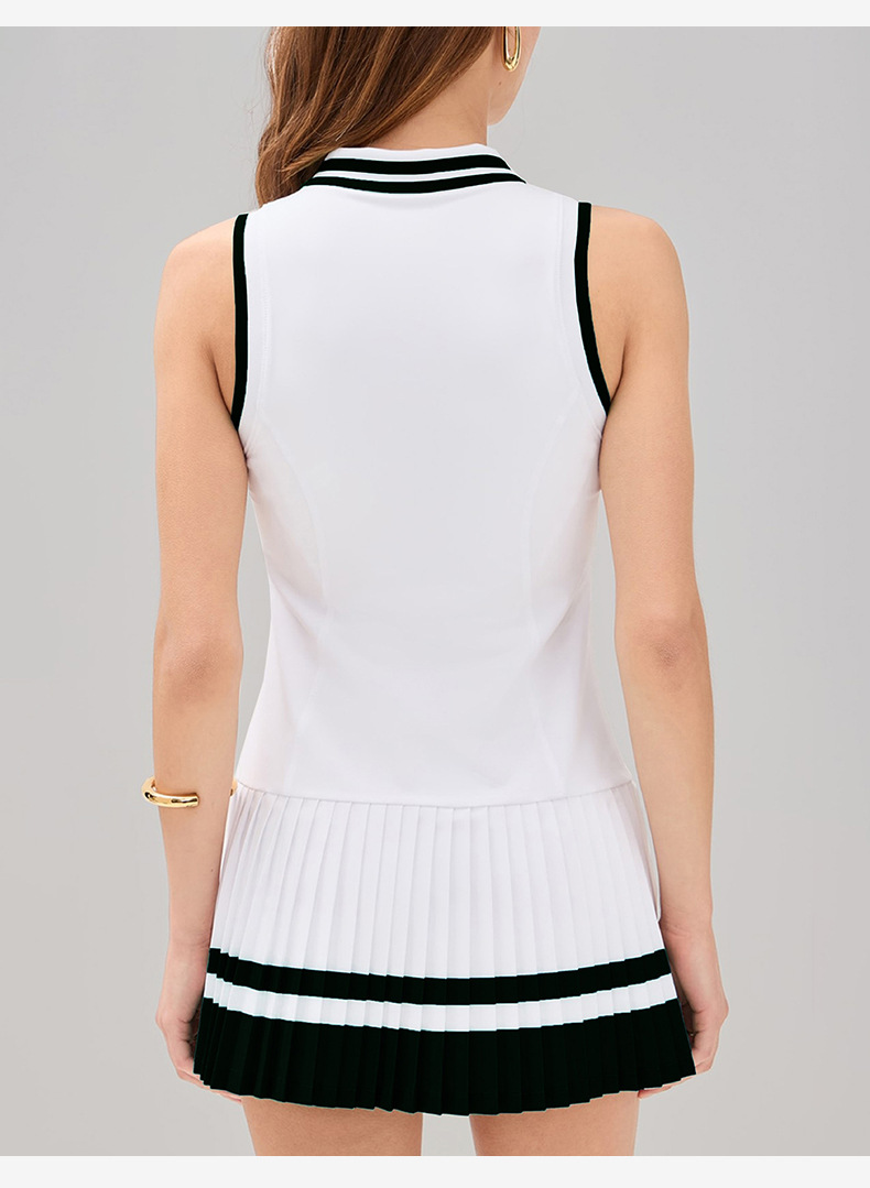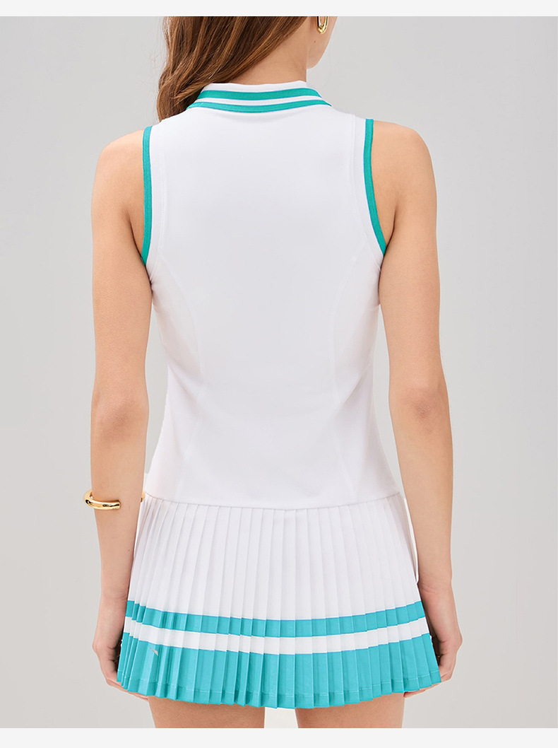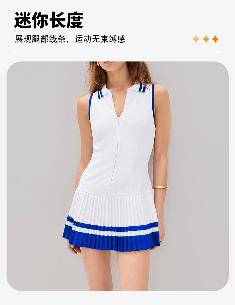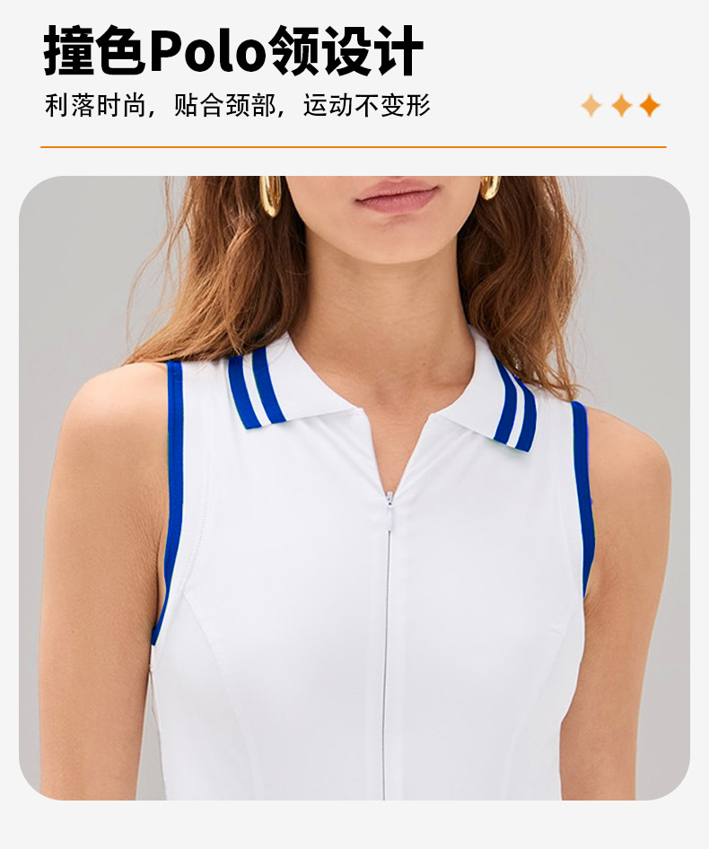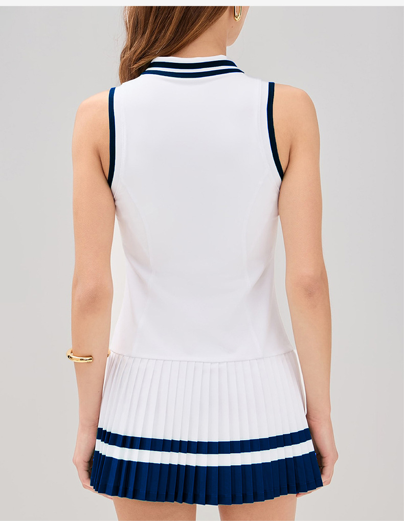 Трансграничная молния без рукавов Polo-образный воротник юбка теннисный женский быстрый сухой дышащий цвет плиссированное повседневное платье для фитнеса