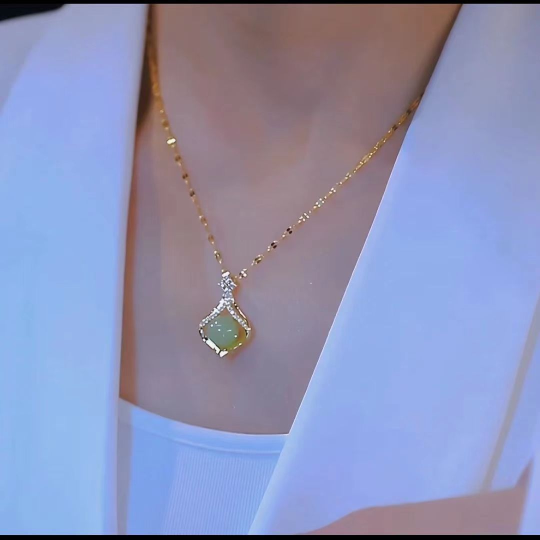 Модное ожерелье из хетианского зеленого агата с высококачественным легким роскошным нишевым стилем и модной подвеской из бисера.