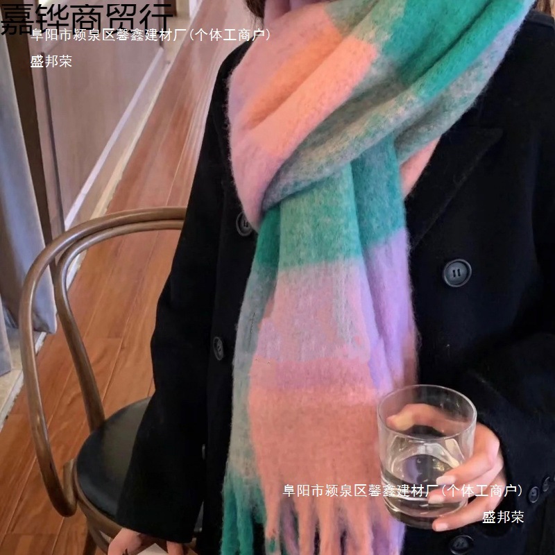 Новый осенне-зимний утолщенный теплый шарф в клетку радужного цвета, европейская и американская пряжа с петлями, толстая шаль с кисточками, универсальная универсальная шаль
