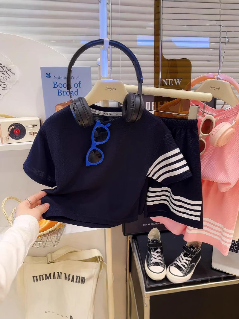 Индивидуальный спортивный костюм 2025 года для мальчиков и девочек, повседневные укороченные шорты с коротким рукавом, стильный двухкомплектный набор для мальчиков.