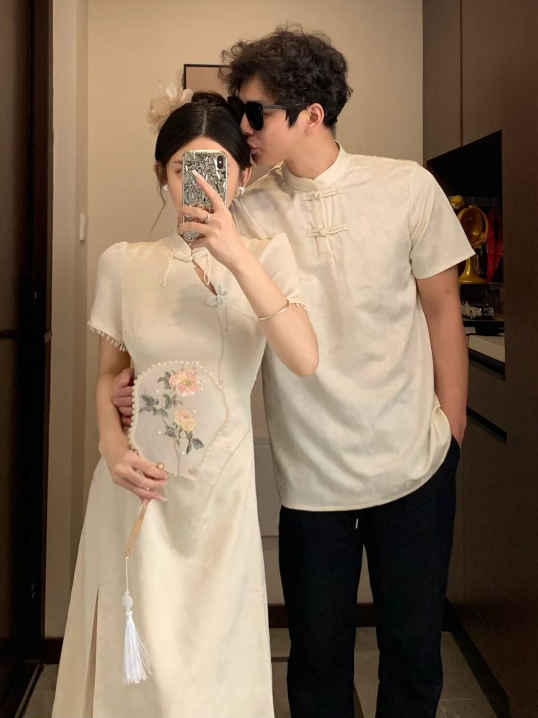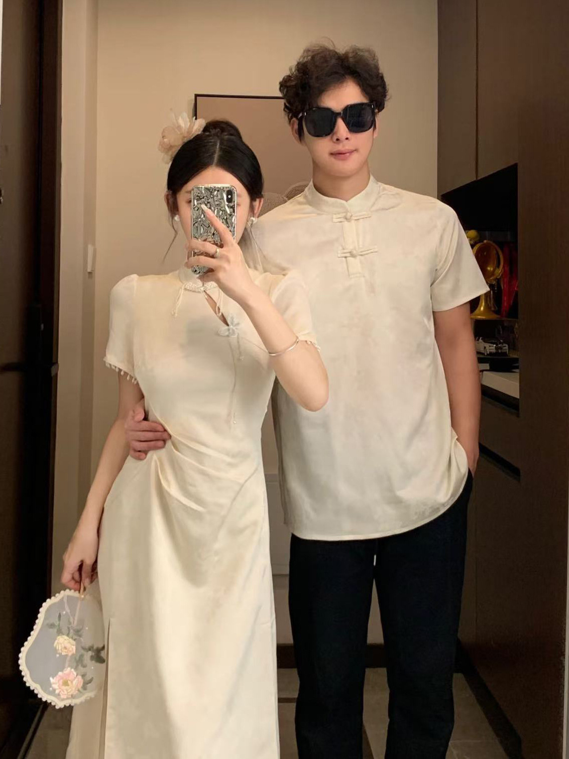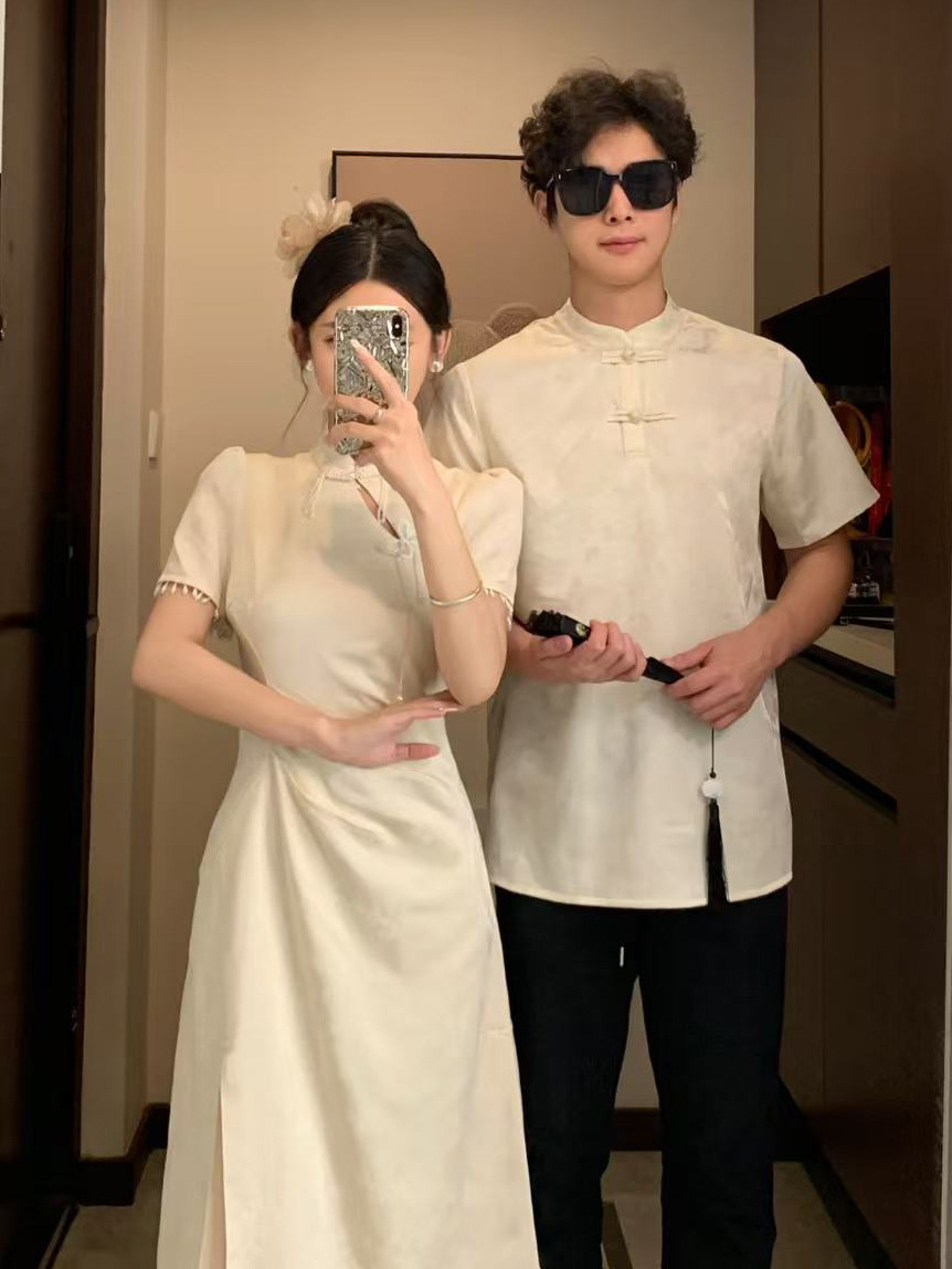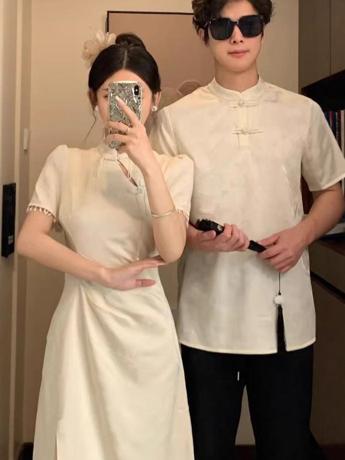 Новая одежда для пар в китайском стиле, летняя новая универсальная облегающая талию в национальном стиле, улучшенное платье, мужская рубашка с воротником-стойкой Cheongsam