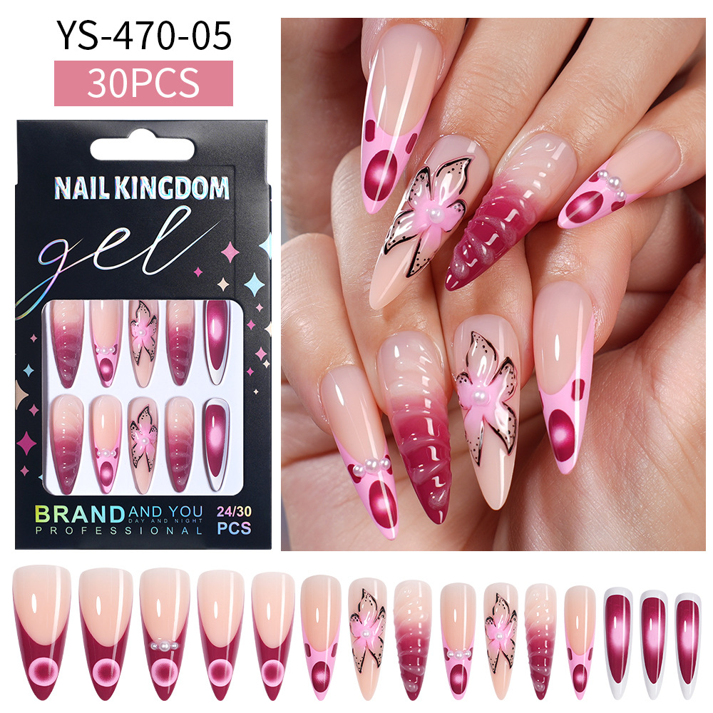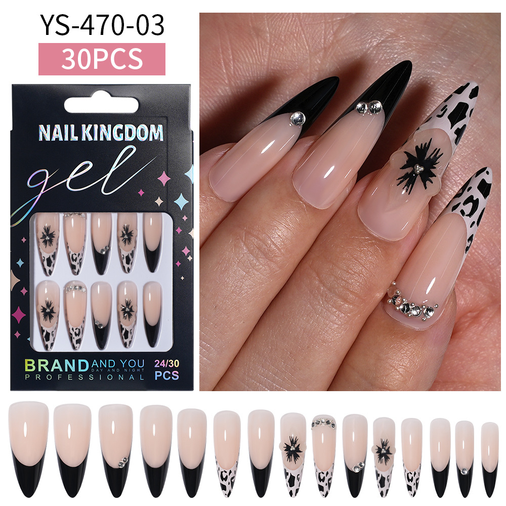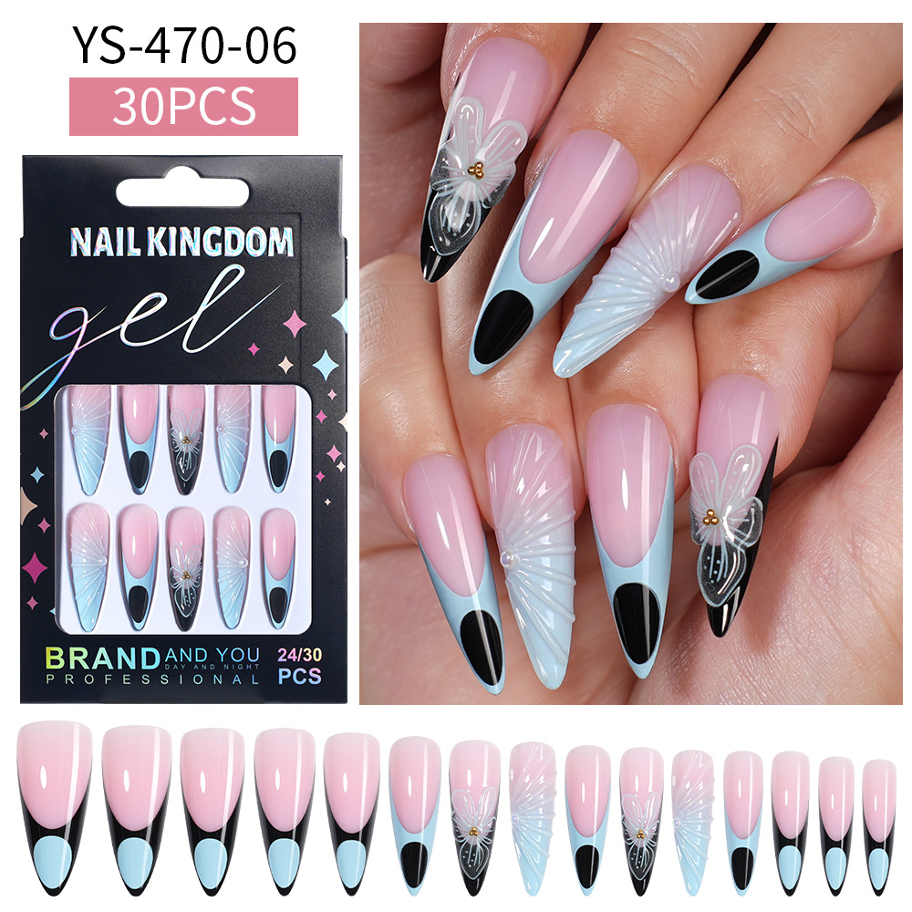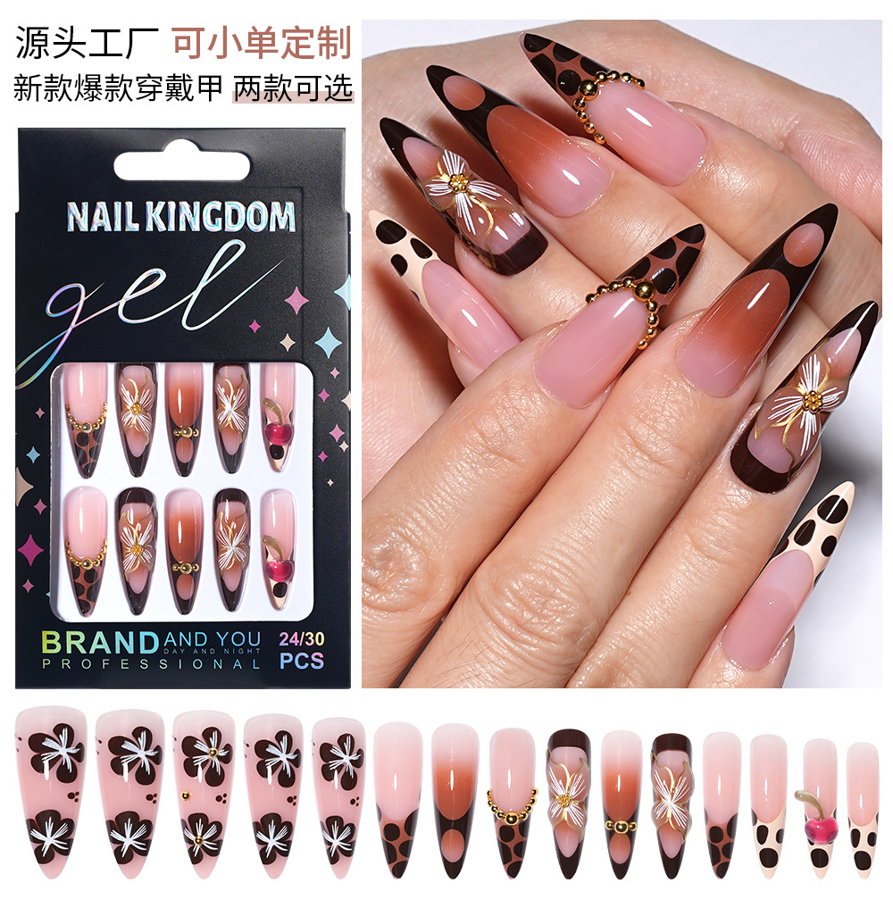 Популярные носимые ногти ручной работы Xiyin, сладкие и крутые цветы, миндаль, длинный готовый маникюр, съемные нашивки, накладные ногти