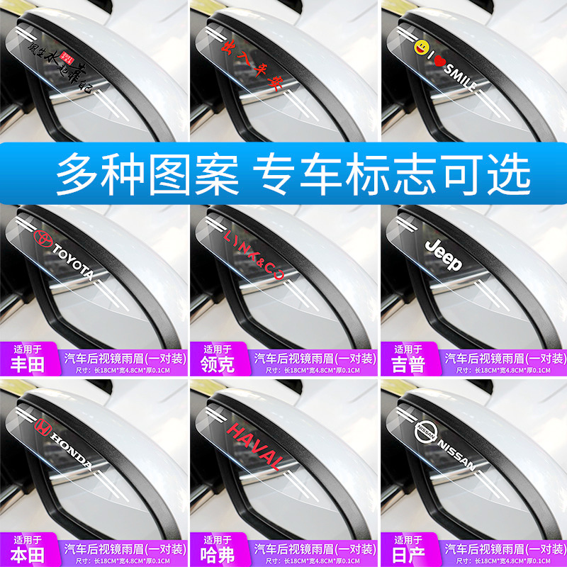 Зеркало заднего вида для автомобиля, дождевик, защита от дождя, логотип автомобиля, мультяшный узор, прозрачное украшение, универсальное