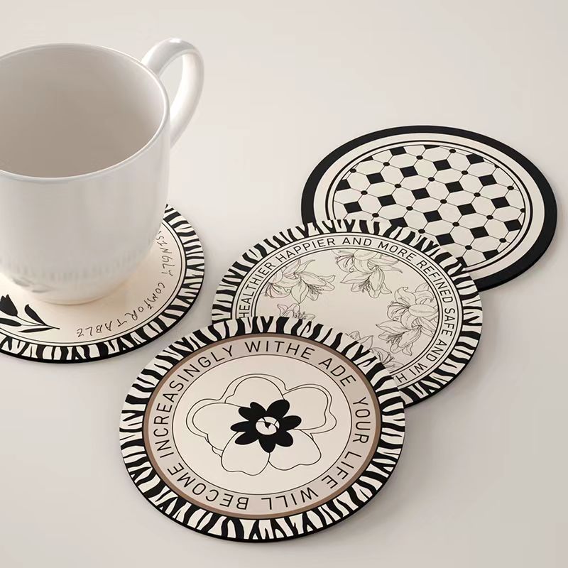 Черно-белые впитывающие подставки в стиле ретро, простые изолированные салфетки из диатомовой грязи, доступные роскошные и высококачественные коврики для посуды, кофейные коврики, чайные чашки.