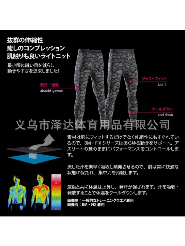 Японская спортивная одежда для фитнеса BODYMAKER, мужские камуфляжные брюки с длинными рукавами, быстросохнущий облегающий, впитывающий пот, защита от солнца, тренировка