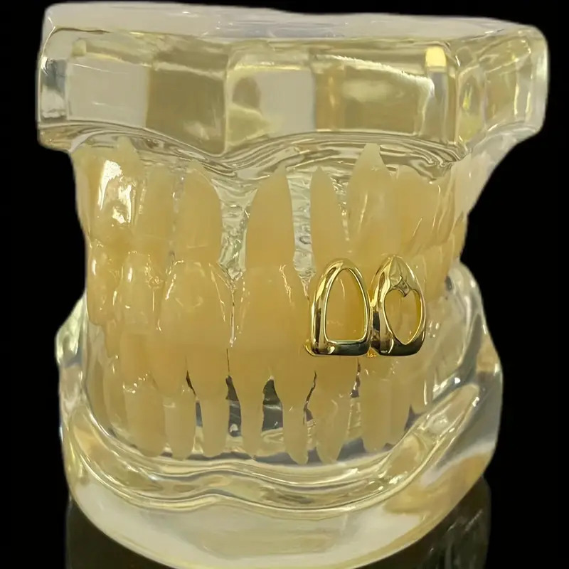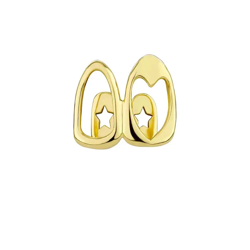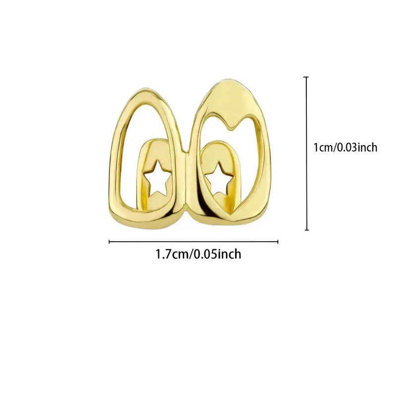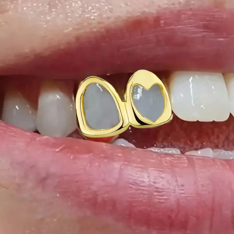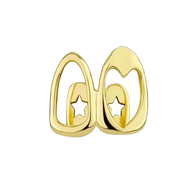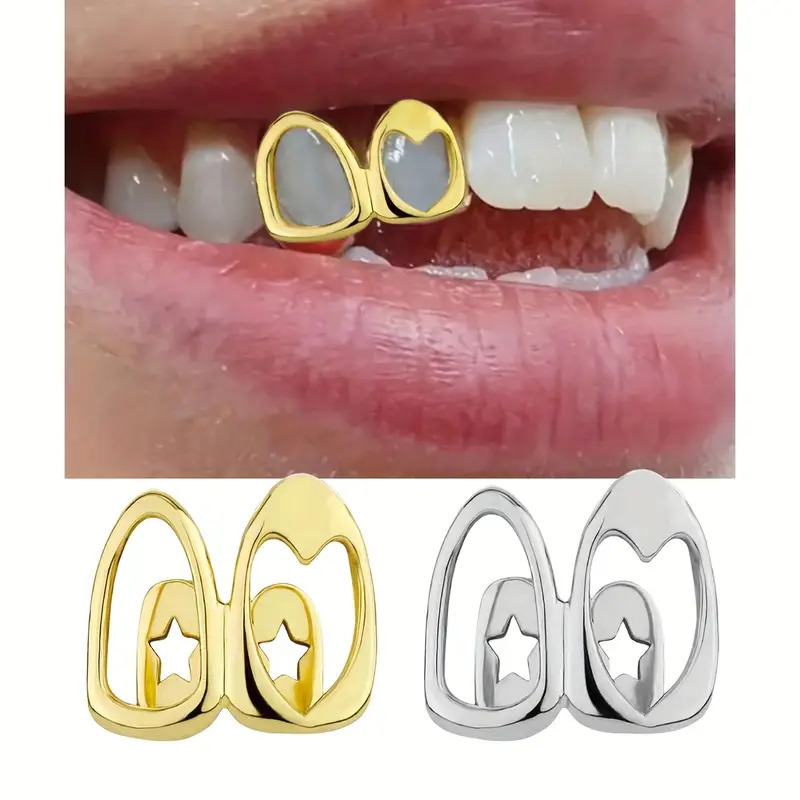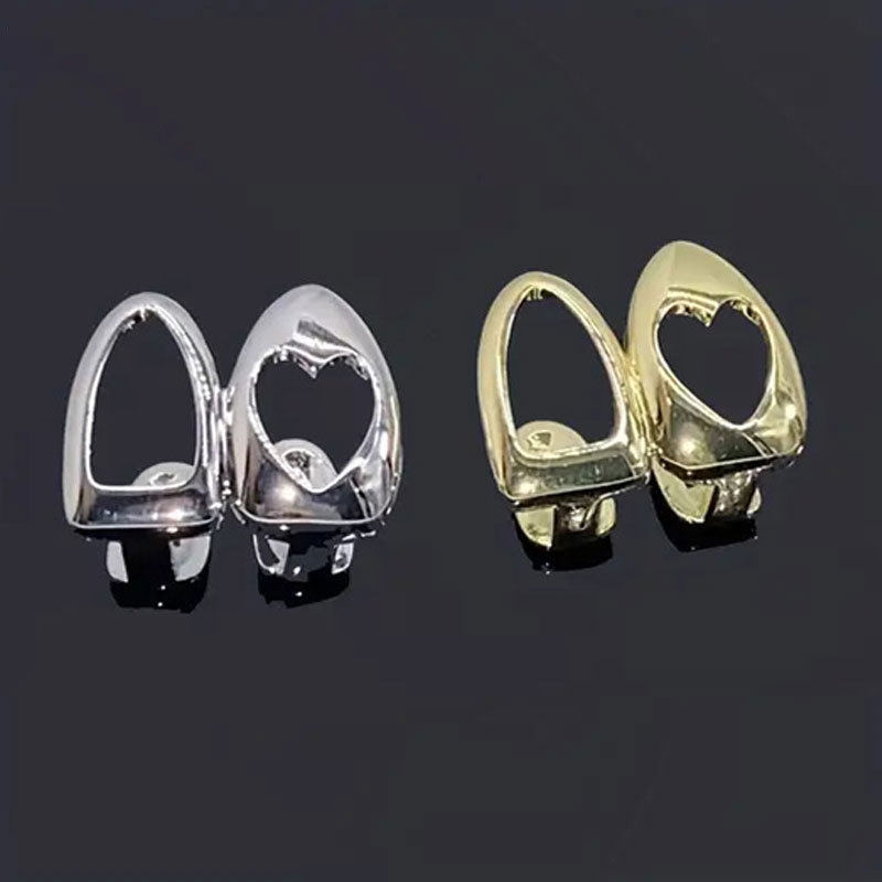 Трансграничные популярные двойные брекеты с полым сердцем для ежедневных прогулок, крутые блестящие золотые зубы, универсальные аксессуары для зубов в стиле хип-хоп оптом