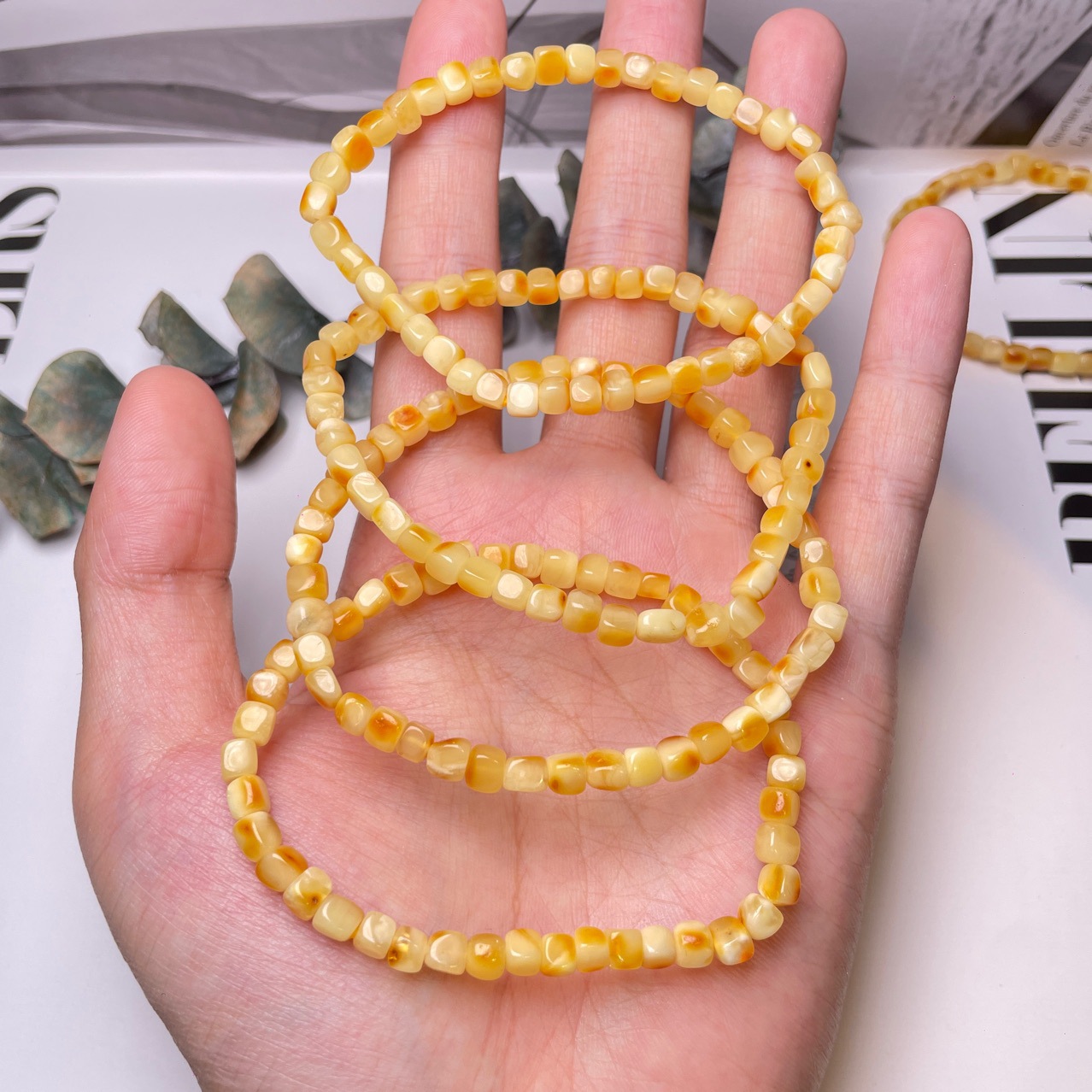 Натуральный пчелиный воск, сахарный кубик, белый цветок, красивый янтарь, браслет 4-5 мм, ювелирные изделия, женские аксессуары, мужские, гарантия прямой трансляции