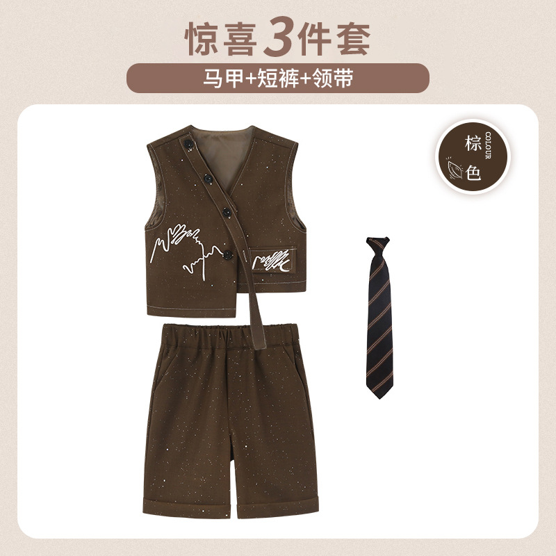 Костюмы для мальчиков, модные костюмы-жилеты в британском стиле, детские костюмы для фотосъемки маленького и среднего размера для детей одного года, костюмы для выступлений с цветочными девушками.