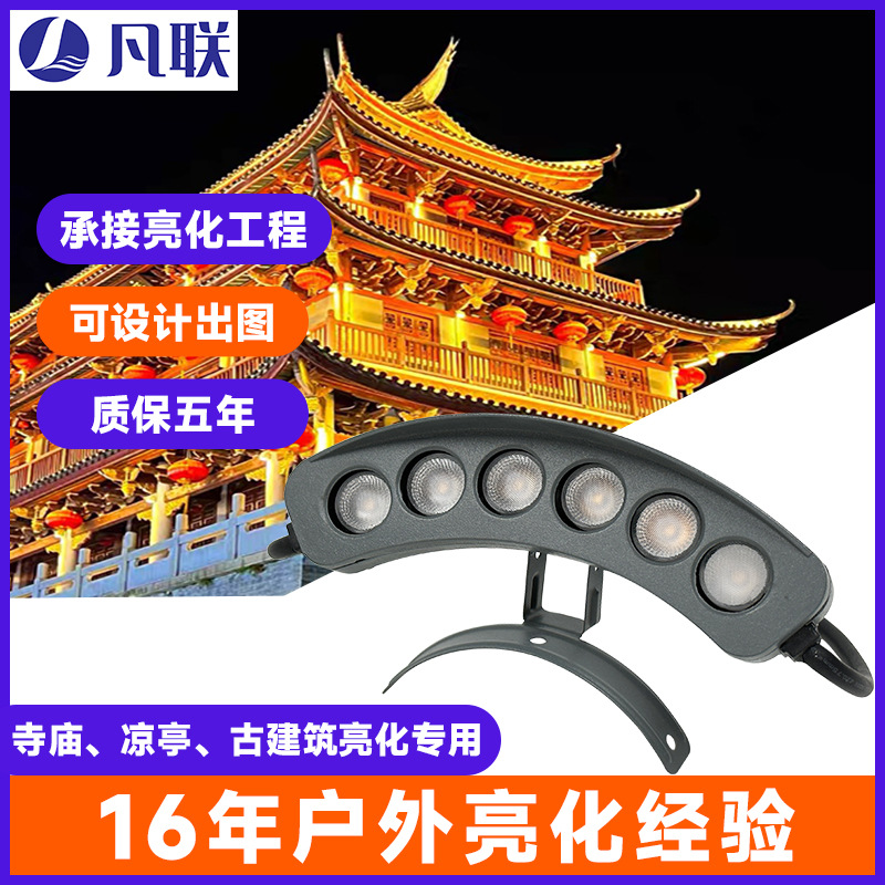古建筑瓦楞灯户外led亮化防水屋檐寺庙凉亭工程灯瓦片灯6W24V厂家