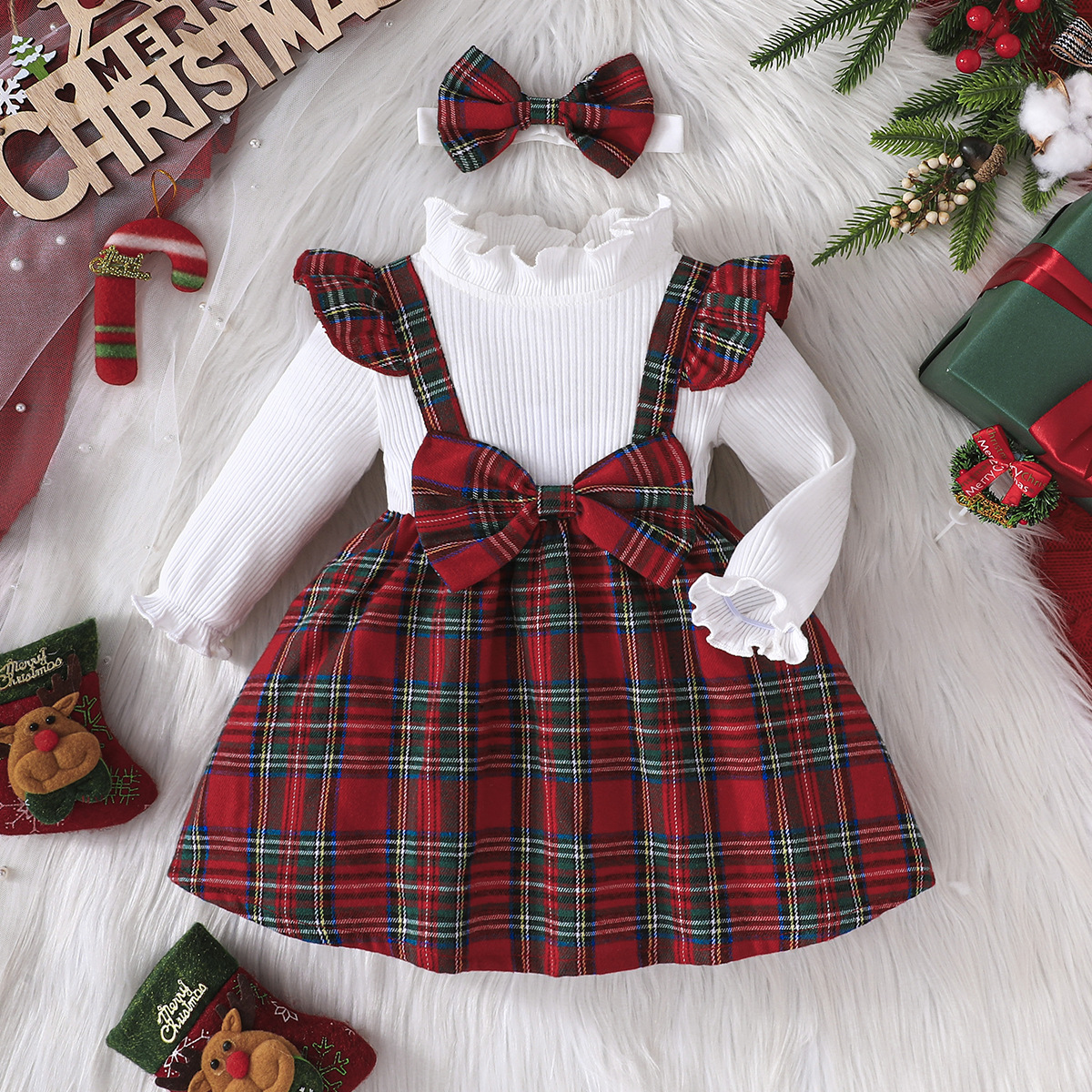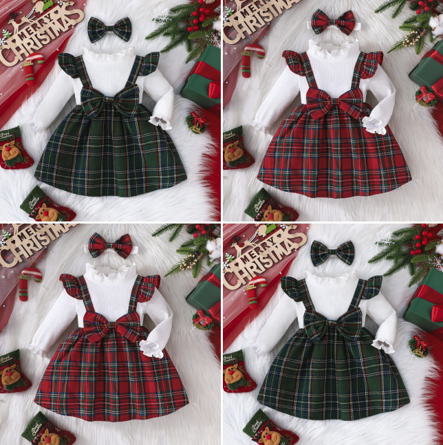 Детское платье с длинными рукавами, полосатое, в клетку, с бантом, рождественский стиль, для трансграничной торговли