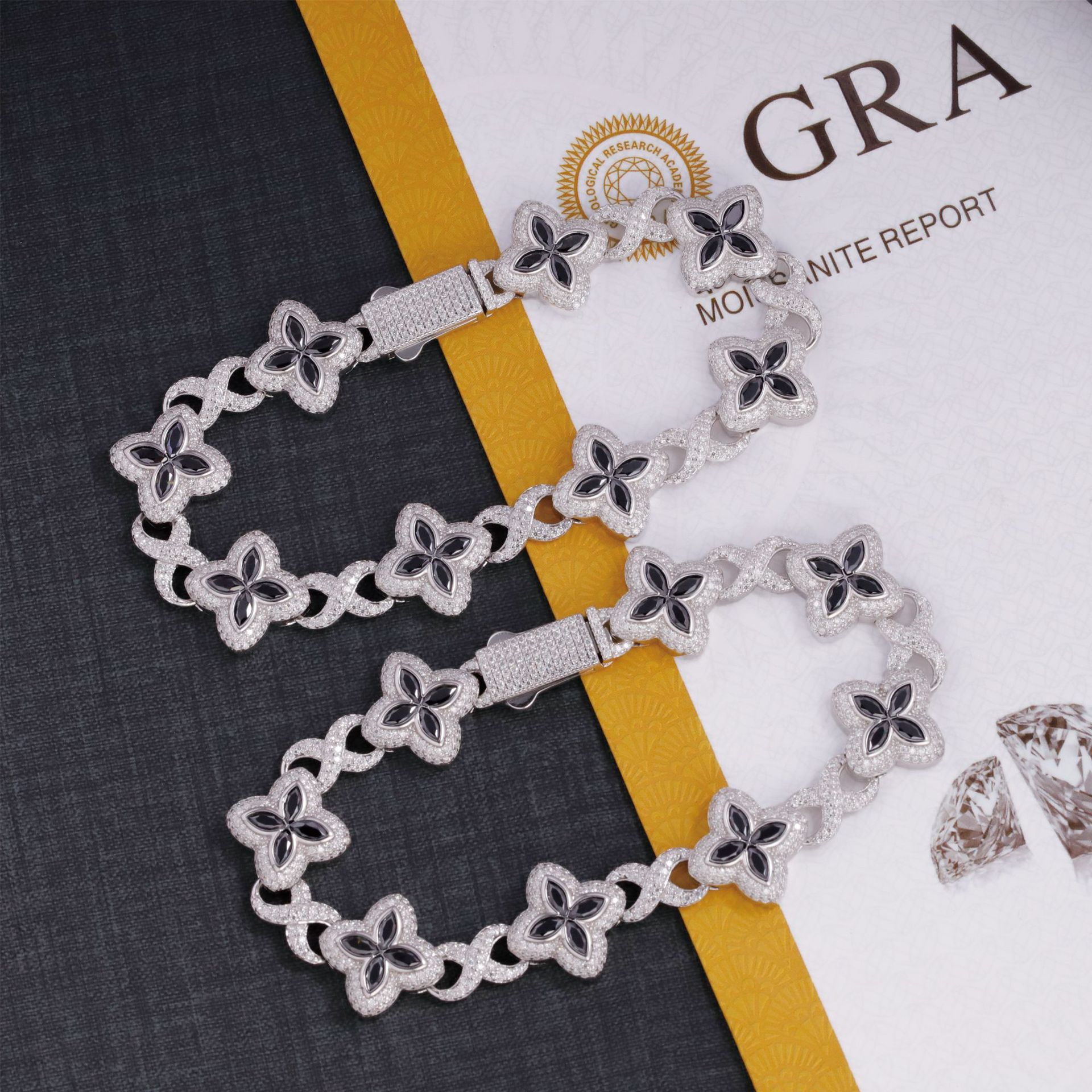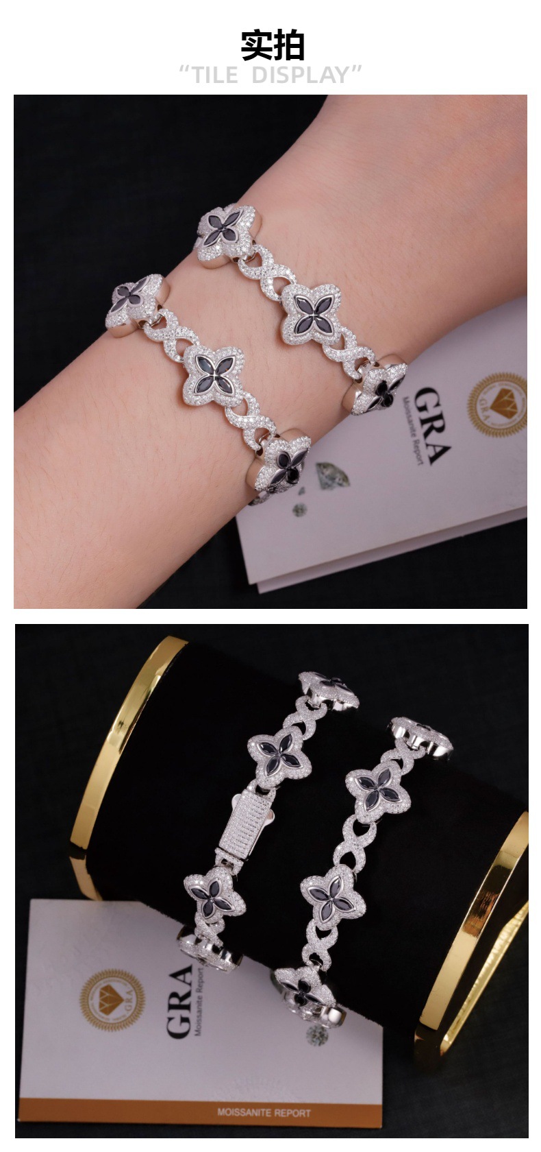 Европейский и американский бестселлер: черный браслет с четырехлистным клевером, серебро S925 с инкрустацией из муассанита, легкий люкс, модный, высококачественный браслет для мужчин и женщин.