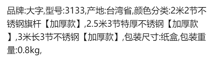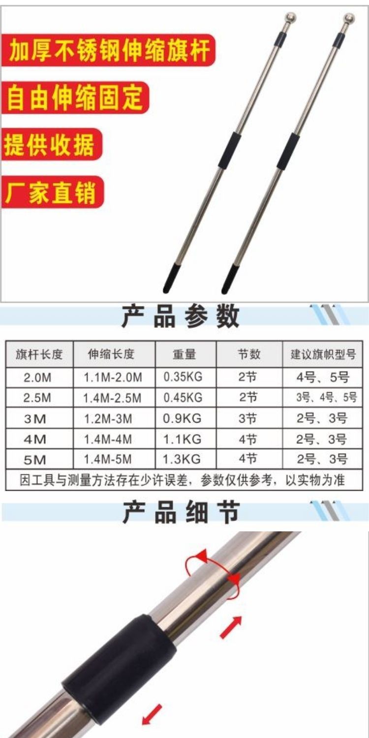 3m 3-секционная нержавеющая сталь [утолщенная версия]; 2.5; Флагшток из нержавеющей стали, 2.2m секции [утолщенная версия]