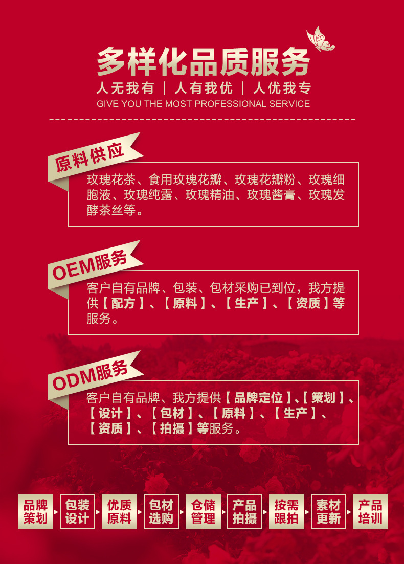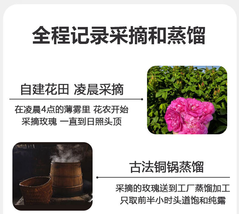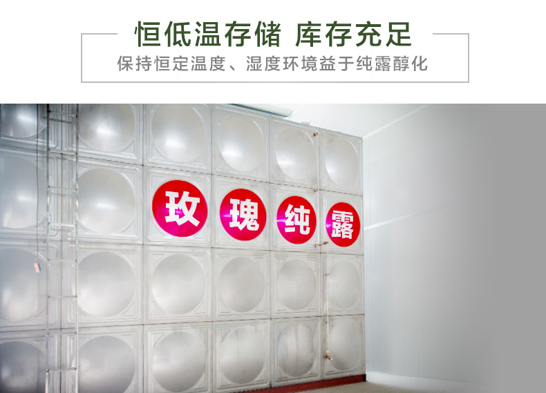 本工厂是玫瑰产地厂家直供,批发供应首道饱和玫瑰纯露,没有提取精油,花水比例1:1,不回流进行反复蒸馏. 保留重瓣红玫瑰里面的精油成分,香气浓郁.