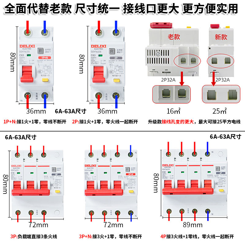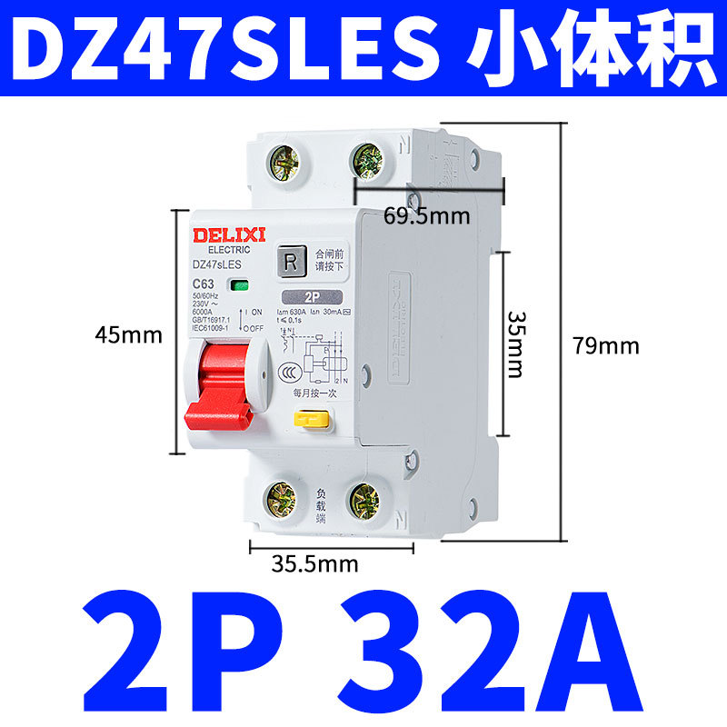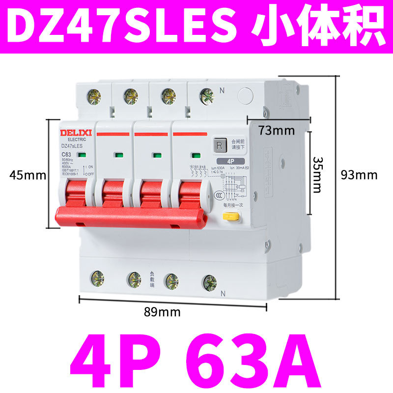 Воздушный выключатель Delixi DZ47SLES с защитой от утечки, маленький автоматический выключатель 1P2P3P + N, воздушный выключатель с защитой от утечки 4P