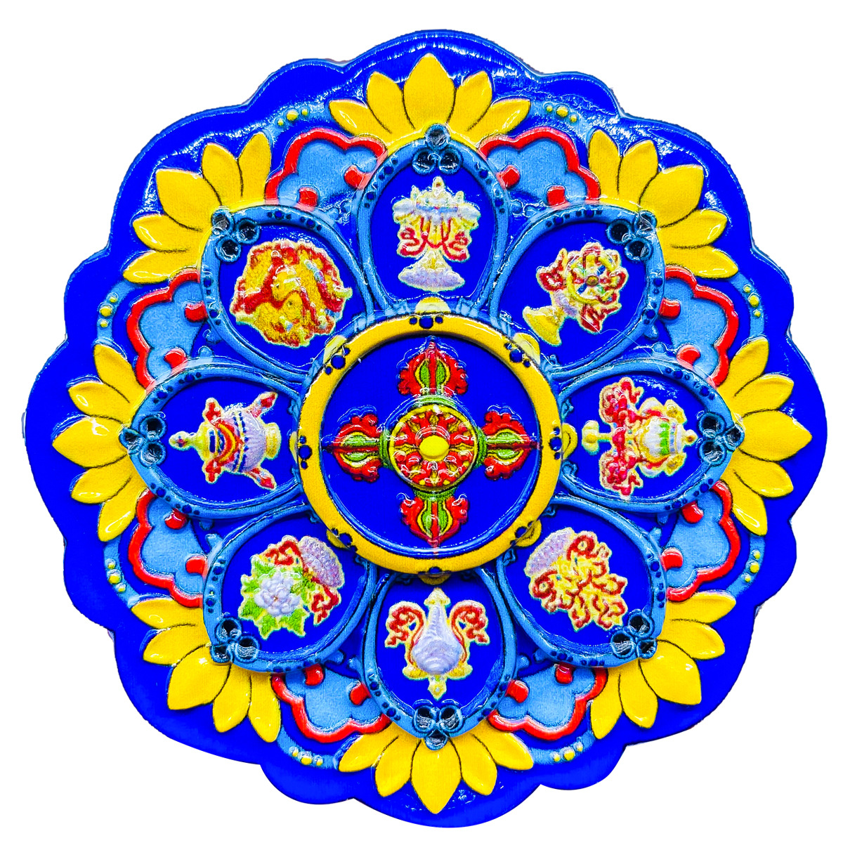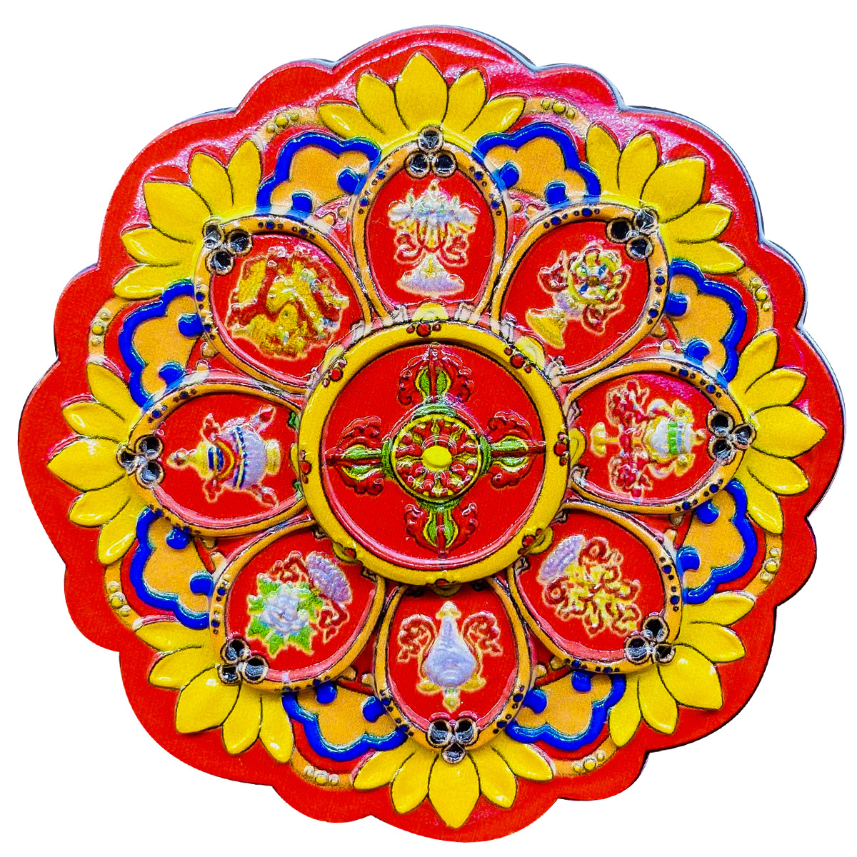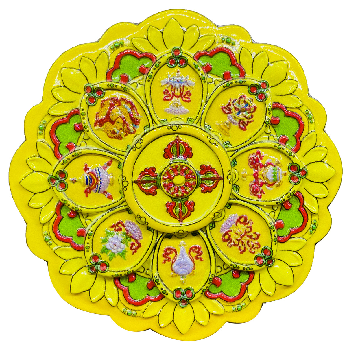 Оранжевая чакра; Синее колесо времени Кинг-Конг; Зеленое колесо времени Кинг-Конг; Синие десять стадий свободы; Красные десять фаз свободы; Красные благоприятные восемь сокровищ; Синие благоприятные восемь сокровищ; Желтые благоприятные восемь сокровищ