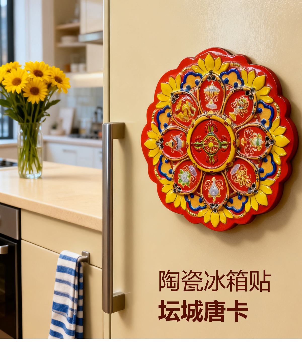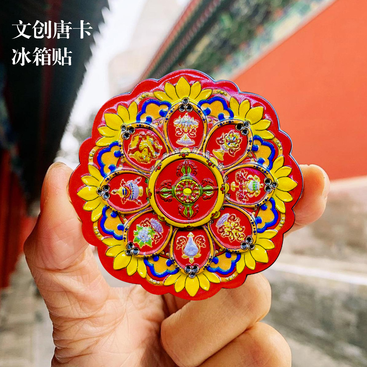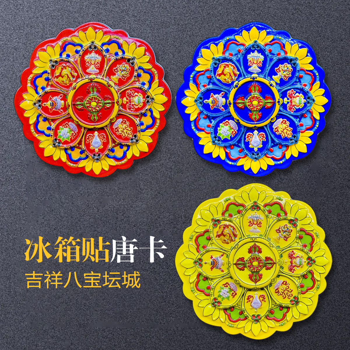 Магниты на холодильник с культурно-креативным дизайном: Колесо Дхармы, Мандала Ваджра, Счастливые восемь сокровищ, расписанные вручную статуэтки Будды, декоративные картины тибетских тангка