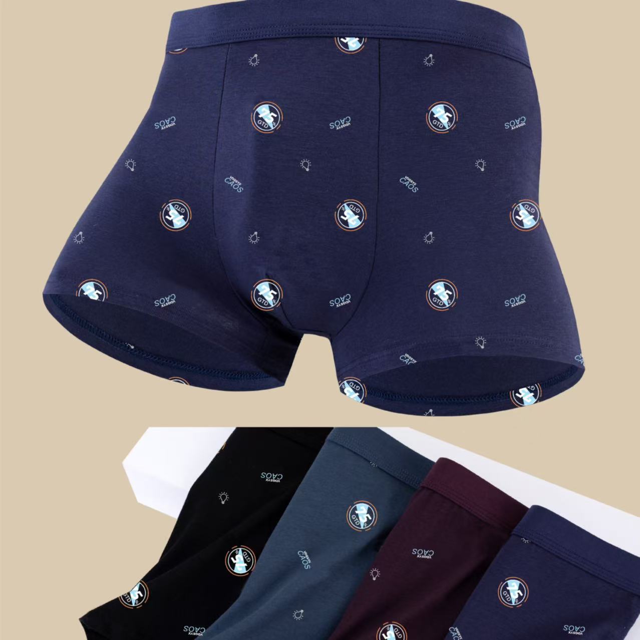 Чистый цвет принт хлопчатобумажная средняя талия удобное и дышащее мужское плоское нижнее белье