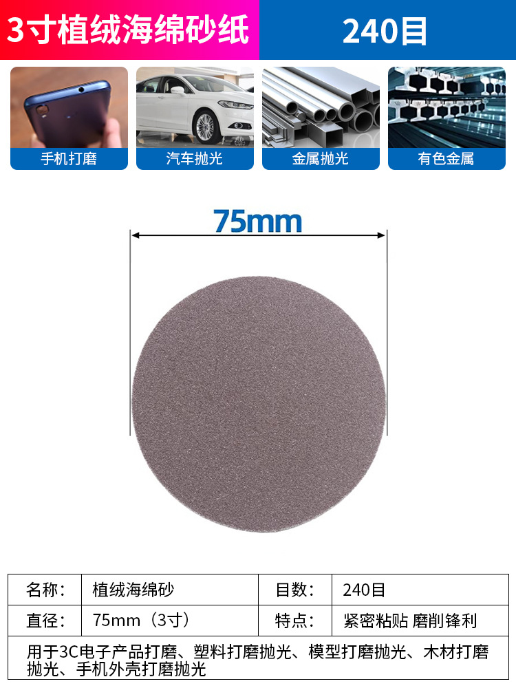 Губка, наждачная бумага, чехол для мобильного телефона, металлическая модель автомобиля, полировка краски, губка, электрическая шлифовка, флокирование, самоклеящийся диск, наждачная бумага