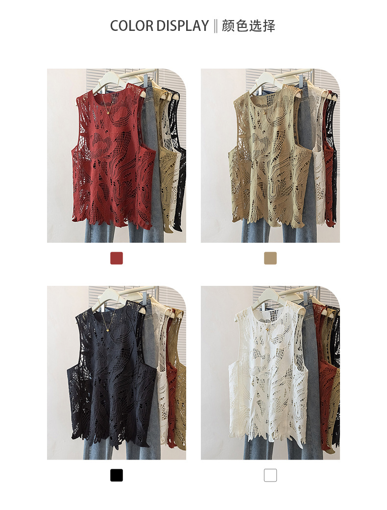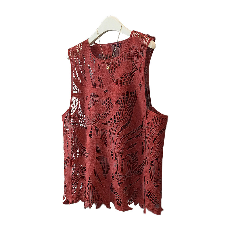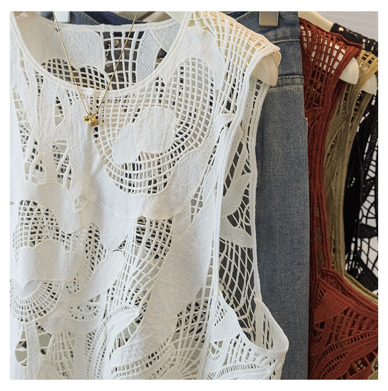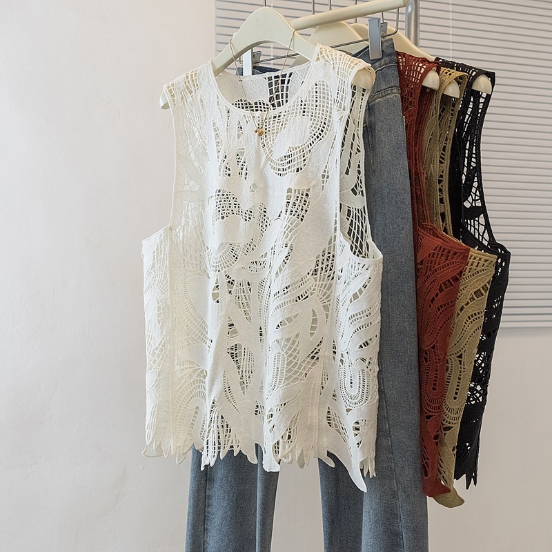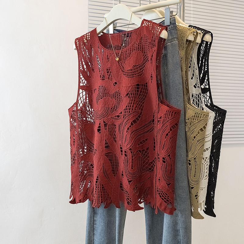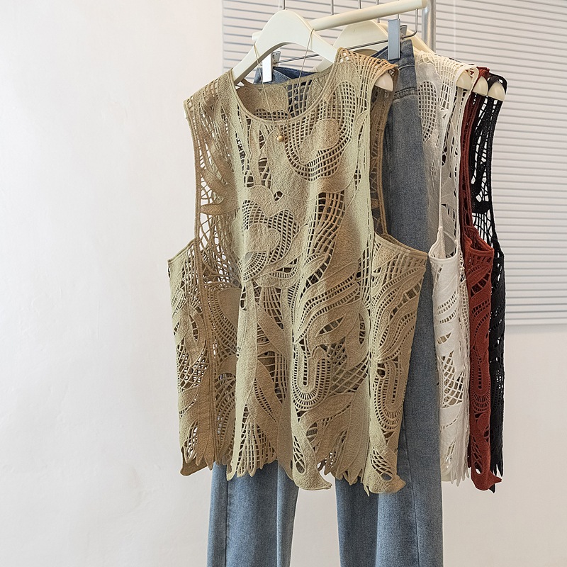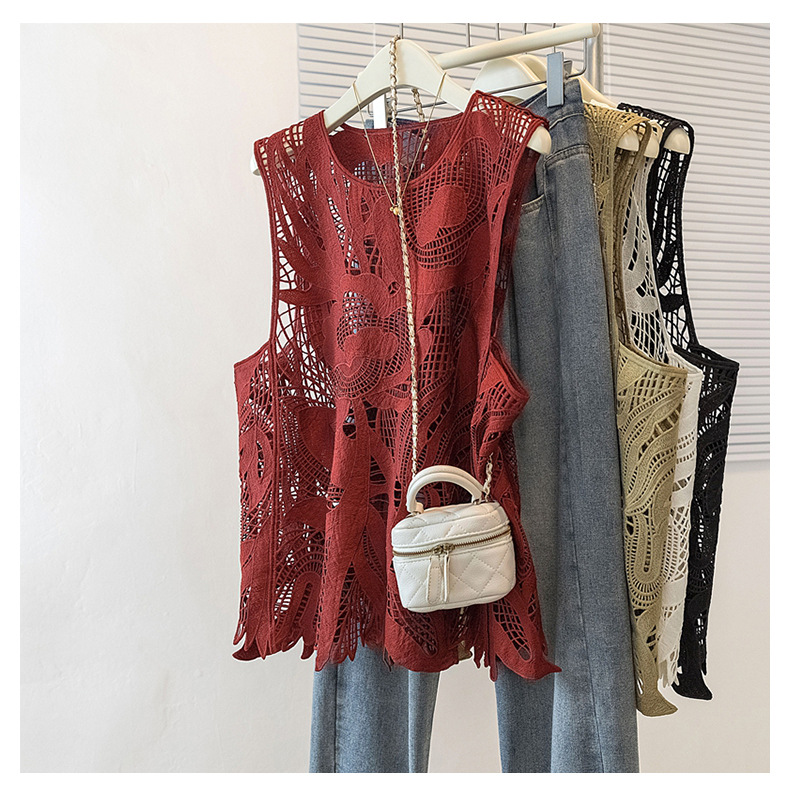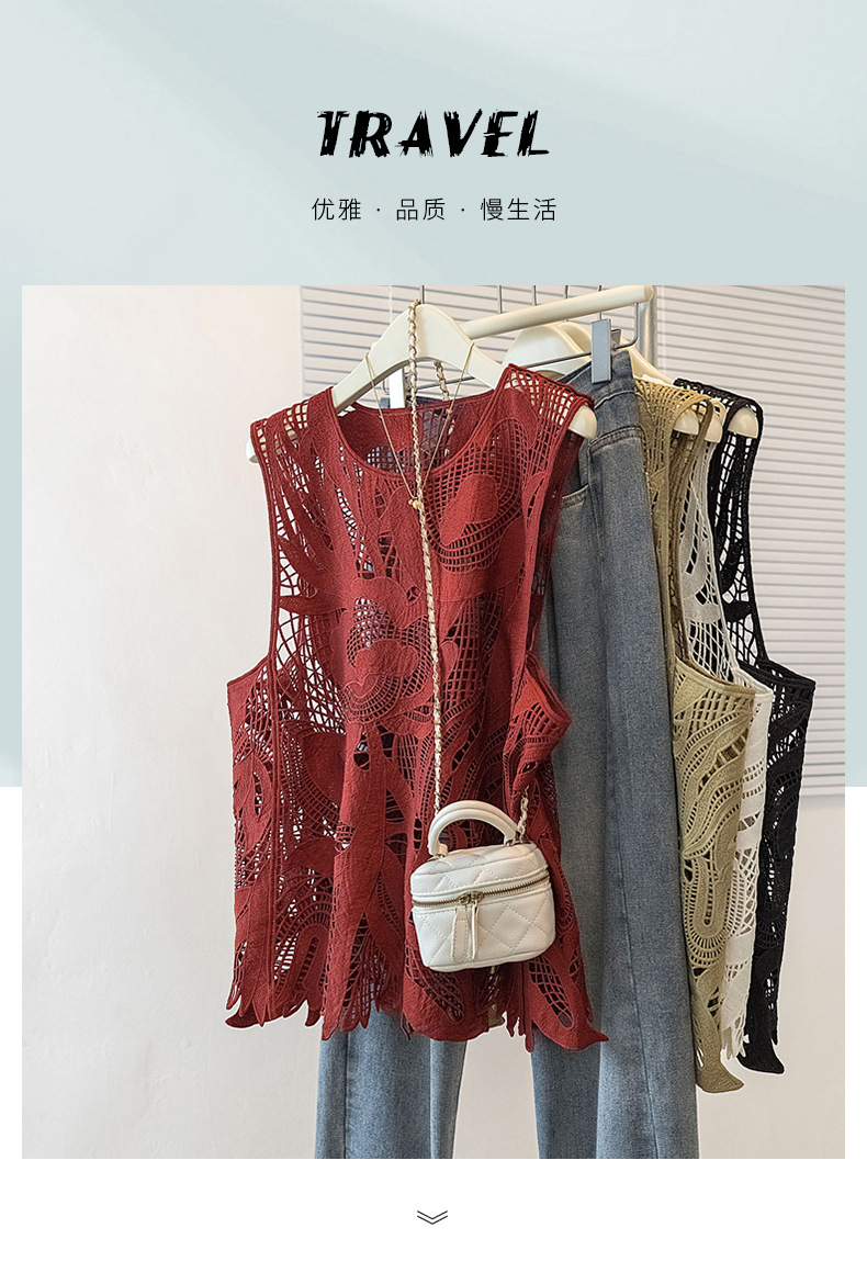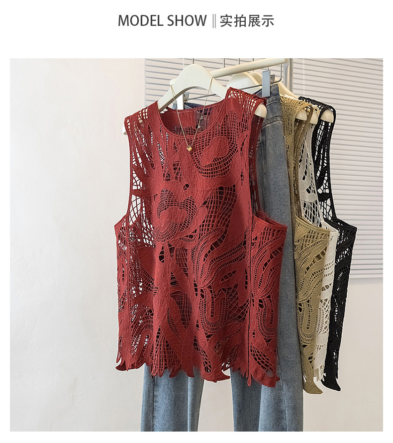 Реальные фото: Женская одежда больших размеров, новинка ранней весны 2026 года, элитный свободный топ без рукавов с ажурной вязкой крючком