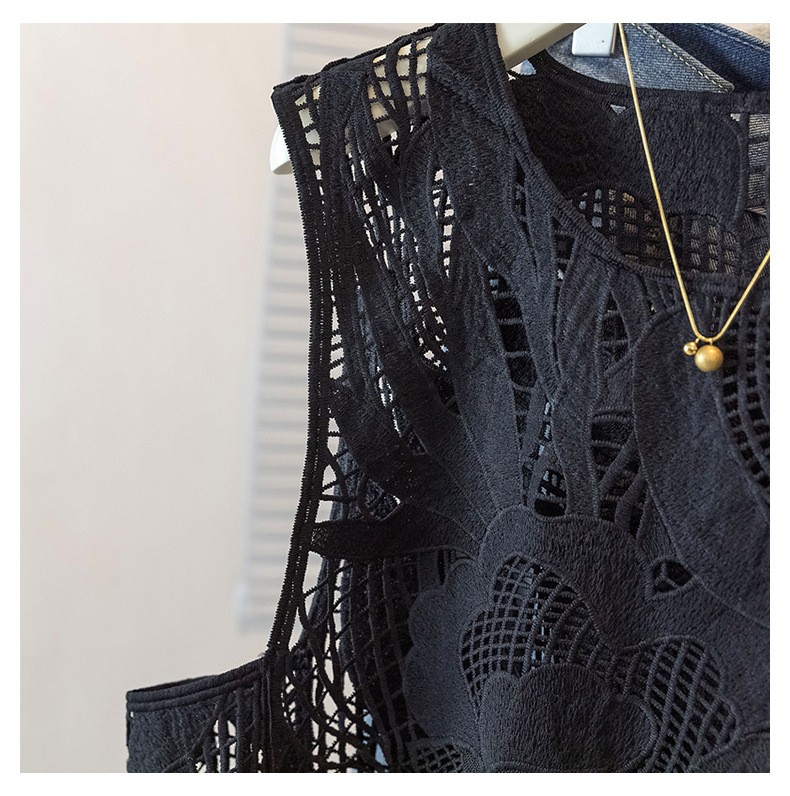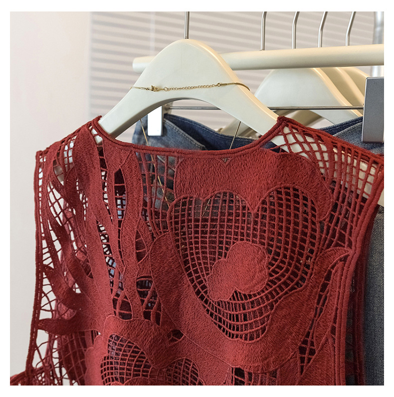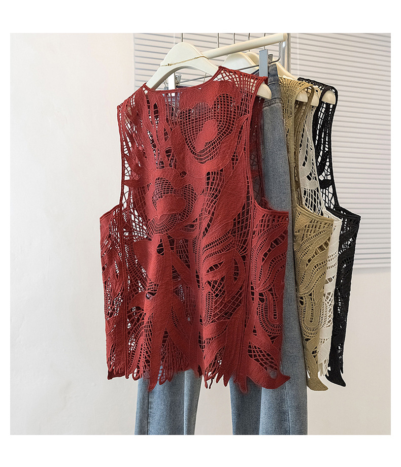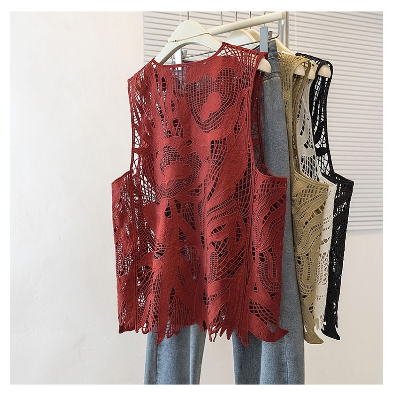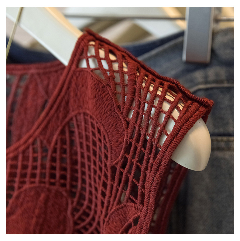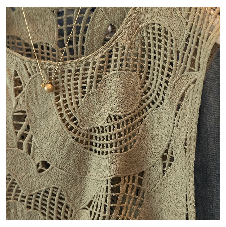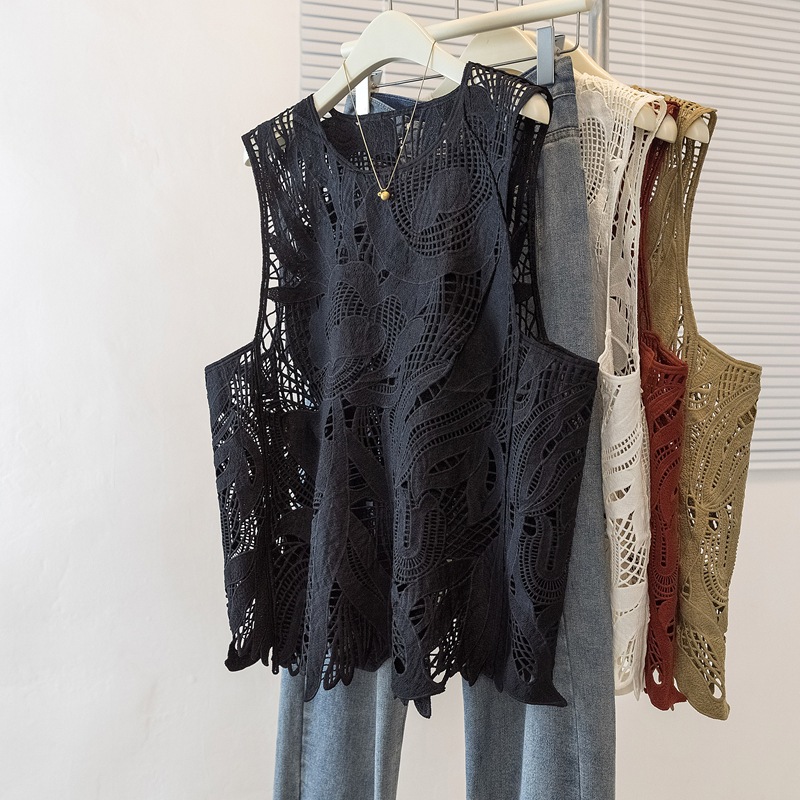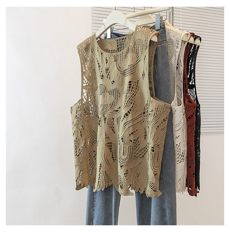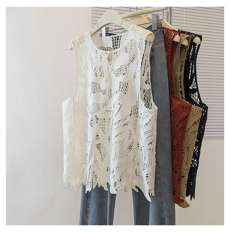 Реальные фото: Женская одежда больших размеров, новинка ранней весны 2026 года, элитный свободный топ без рукавов с ажурной вязкой крючком
