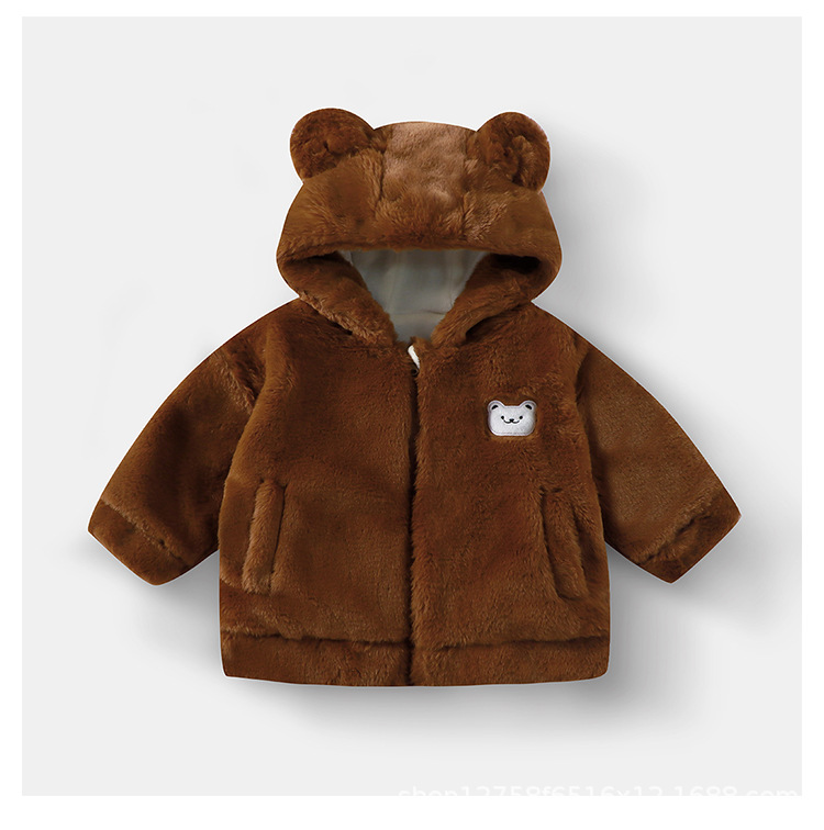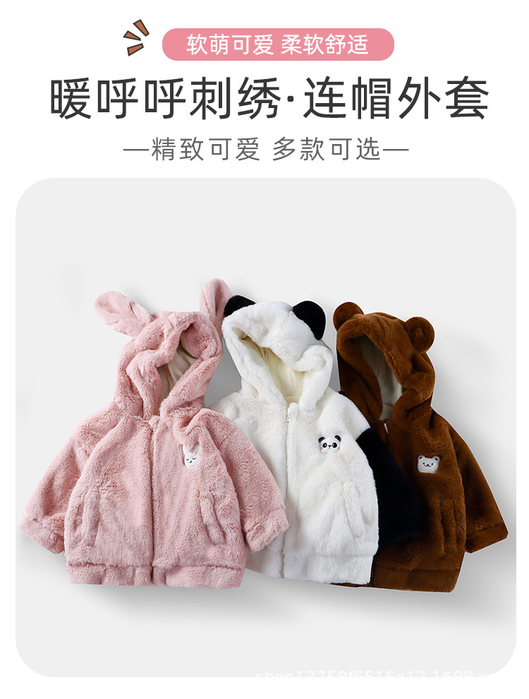 Детская меховая универсальная верхняя одежда, новый стиль, теплый бархатный топ с капюшоном для малышей, детский кардиган, верхняя одежда на молнии