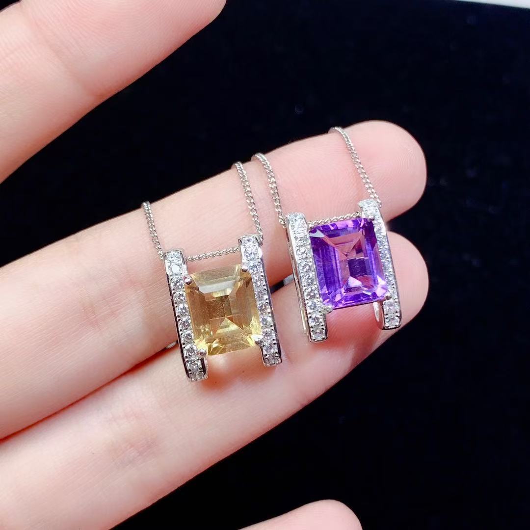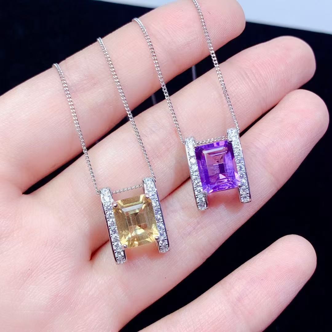 Подвеска из натурального цитрина и аметиста, серебро 925 пробы с буквами, простой нишевый дизайн, высококачественные ювелирные изделия для женщин