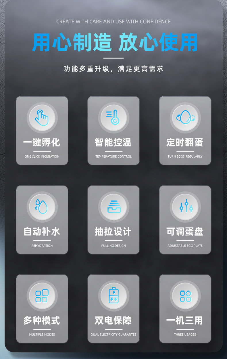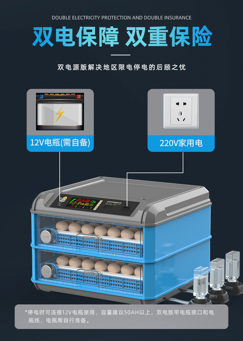 6 одиночных батарей [автоматическое наполнение водой + выдвижной лоток для яиц]; 6 двойных батарей [автоматическое наполнение водой + выдвижной лоток для яиц]; 9 одиночных батарей [автоматическое наполнение водой + выдвижной лоток для яиц]; 9 двойных батарей [автоматическое наполнение водой + выдвижной лоток для яиц]; 12 отдельных батарейок [автоматическое наполнение водой + выдвижной лоток для яиц]; 12 двойных батарей [автоматическое наполнение водой + выдвижной лоток для яиц]; 16 отдельных батарейок [автоматическое наполнение водой + выдвижной лоток для яиц]; 16 двойных батарей [автоматическое наполнение водой + выдвижной лоток для яиц]; 24 отдельные батарейки [автоматическое наполнение водой + выдвижной лоток для яиц]; 24 двойных аккумулятора [автоматическое наполнение водой + выдвижной лоток для яиц]; 30 одиночных батарей [автоматическое наполнение водой + выдвижной лоток для яиц]; 30 штук двойных батарей [автоматическое наполнение водой + выдвижной лоток для яиц]; 36 отдельных батарейок [автоматическое наполнение водой + выдвижной лоток для яиц]; 36 двойных батарей [автоматическое наполнение водой + выдвижной лоток для яиц]; 48 отдельных батарейок [автоматическое наполнение водой + выдвижной лоток для яиц]; 48 штук двойных батарей [автоматическое наполнение водой + выдвижной лоток для яиц]; 56 отдельных батарей [двойной дисплей температуры и влажности + автоматическое заполнение водой]; 56 двойных батарей [двойной дисплей температуры и влажности + автоматическое заполнение водой]; 64 отдельные батарейки [двойной дисплей температуры и влажности + автоматическое наполнение водой]; 64 двойных батареи [двойной дисплей температуры и влажности + автоматическое заполнение водой]; 120 отдельных батарей [двойной дисплей температуры и влажности + автоматическое заполнение водой]; 120 штук двойных батарей [двойной дисплей температуры и влажности + автоматическое заполнение водой]; 128 одиночных батарей [двойной дисплей температуры и влажности + автоматическое заполнение водой]; 128 двойных батарей [двойной дисплей температуры и влажности + автоматическое заполнение водой]; 152 отдельные батарейки [двойной дисплей температуры и влажности + автоматическое заполнение водой]; 152 двойные батареи [двойной дисплей температуры и влажности + автоматическое заполнение водой]; 176 отдельных батарей [двойной дисплей температуры и влажности + автоматическое заполнение водой]; 176 двойных батарей [двойной дисплей температуры и влажности + автоматическое заполнение водой]; 192 отдельных батарейки [двойной дисплей температуры и влажности + автоматическое заполнение водой]; 192 двойных батареи [двойной дисплей температуры и влажности + автоматическое заполнение водой]; 232 одиночных батареи [двойной дисплей температуры и влажности + автоматическое заполнение водой]; 232 двойные батареи [двойной дисплей температуры и влажности + автоматическое заполнение водой]; 256 отдельных батарей [двойной дисплей температуры и влажности + автоматическое заполнение водой]; 256 двойных батарей [двойной дисплей температуры и влажности + автоматическое заполнение водой]; 300 одиночных батарей [двойной дисплей температуры и влажности + автоматическое заполнение водой]; 300 штук двойных батарей [двойной дисплей температуры и влажности + автоматическое заполнение водой]; 392 отдельных батарейки [двойной диспле
