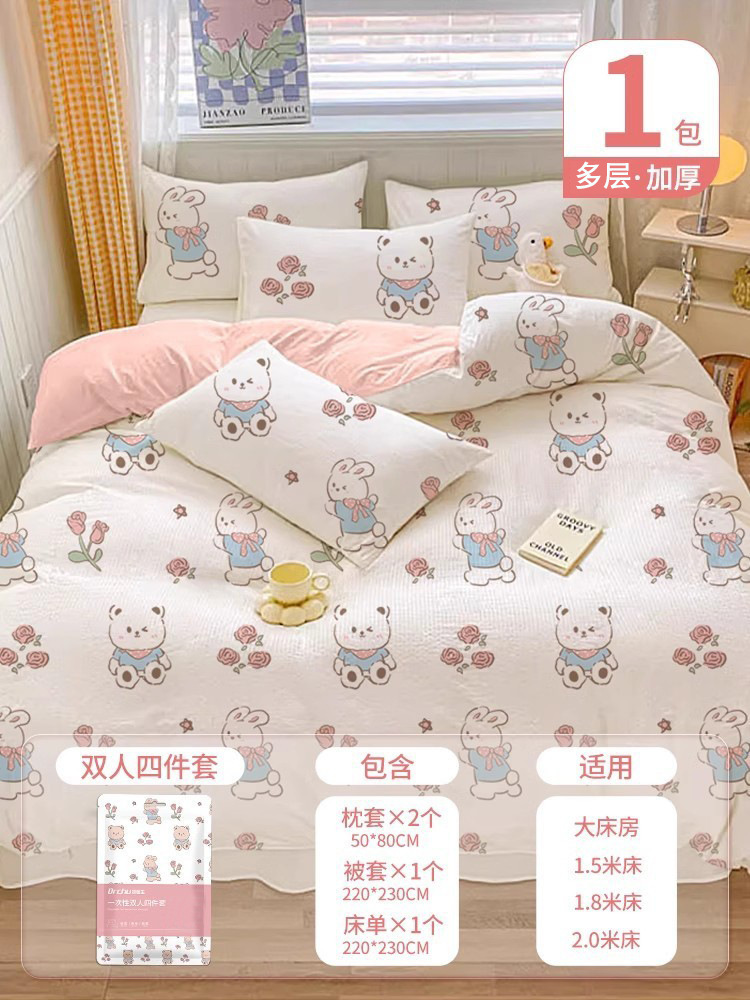 Лапша Dahuahua AB [набор из четырех предметов для двоих, 1 упаковка] подходит для больших спален; Лапша AB Cute Rabbit [двойной набор из четырех предметов, 1 упаковка] Подходит для больших кроватей; Flower Bear AB Side [Двойной набор из четырех предметов, 1 упаковка] Подходит для больших клумб; Лапша Strawberry Bear AB [Двойной набор из 4 предметов, 1 упаковка] Подходит для больших спален; Лапша Dahuahua AB [набор из трех предметов, 1 упаковка] спальное место/стандартная комната