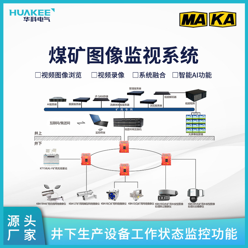 KBA18Y(A)矿用本安型图像处理云台摄像仪(以下简称摄像仪)适用于煤矿井下,有甲烷和煤尘爆炸性气体的环境下,可以通过浏览器或客户端软件,实现远距离传输和实时视频浏览和配置,具备10项行为分析(区域入侵侦测,越界侦测,进入区域侦测,离开区域侦测,物品遗留侦测,物品拿取侦测,徘徊侦测,人员聚集侦测,快速运动侦测,停车侦测,场景变更侦测,虚焦侦测,音频异常侦测),4项异常侦测(工人是否戴安全帽检测报警、矿车数量异常检测报警、人员数量异常报警、皮带跑偏检测报警)等AI功能。