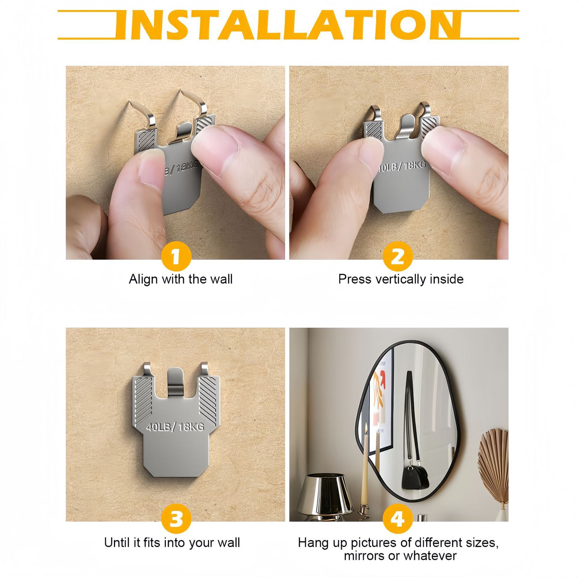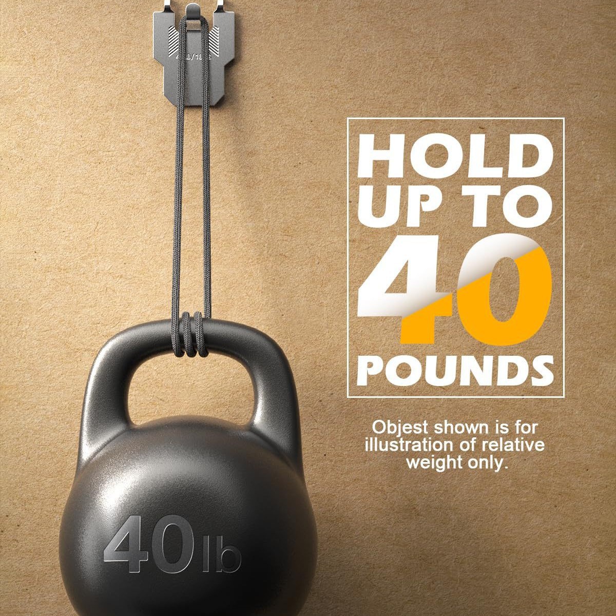 采用硬化钢爪设计,这些挂钩在任何位置都能牢固地锁在干墙上,每个钩子可以承受高达40磅的重量,坚固耐用,可重复使用。