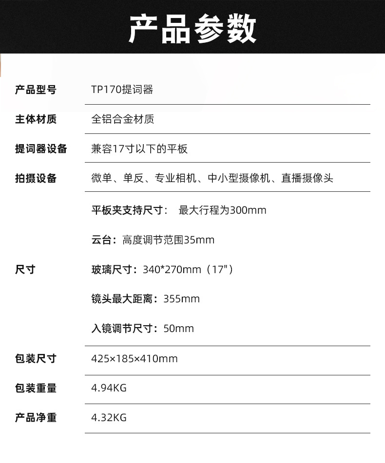 Baishiyue TP170 портативный универсальный телесуфлер для планшетов с большим экраном, телесуфлер для записи на зеркальные и беззеркальные камеры